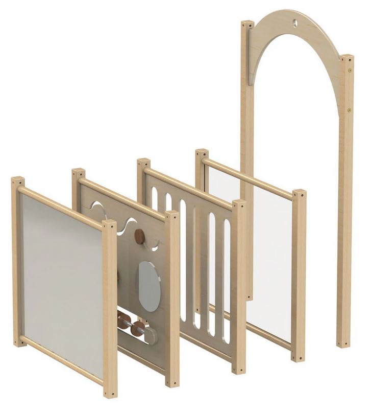 Gefertigt aus massivem Buchenholz und Birken-Sperrholz mit widerstandsfähiger, kindersicherer Klarlack-Oberfläche sind die Elemente besonders stabil, langlebig und pflegeleicht. Spiegel- und Aktivitätsflächen laden zusätzlich zum Entdecken und Spielen ein, während der hohe Rundbogen einen einfachen Durchgang ermöglicht.