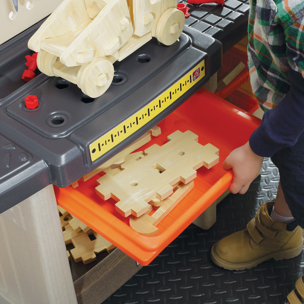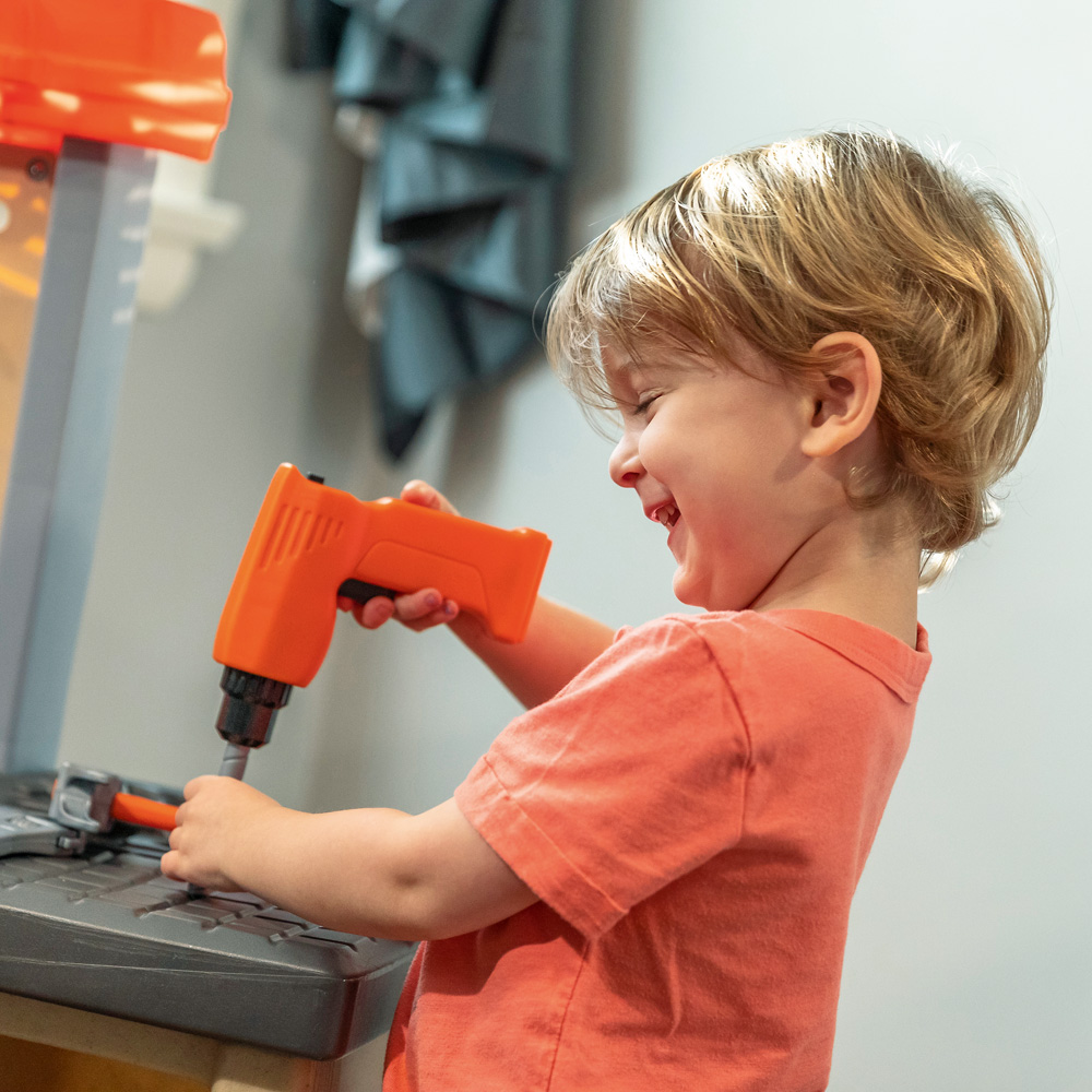 Kleine Handwerker können kreativ werden und sich im Rollenspiel üben. Zur Aufbewahrung von Werkzeug ist die Tischlerecke u.a. mit Ablagen und einer Lochwand ausgestattet.