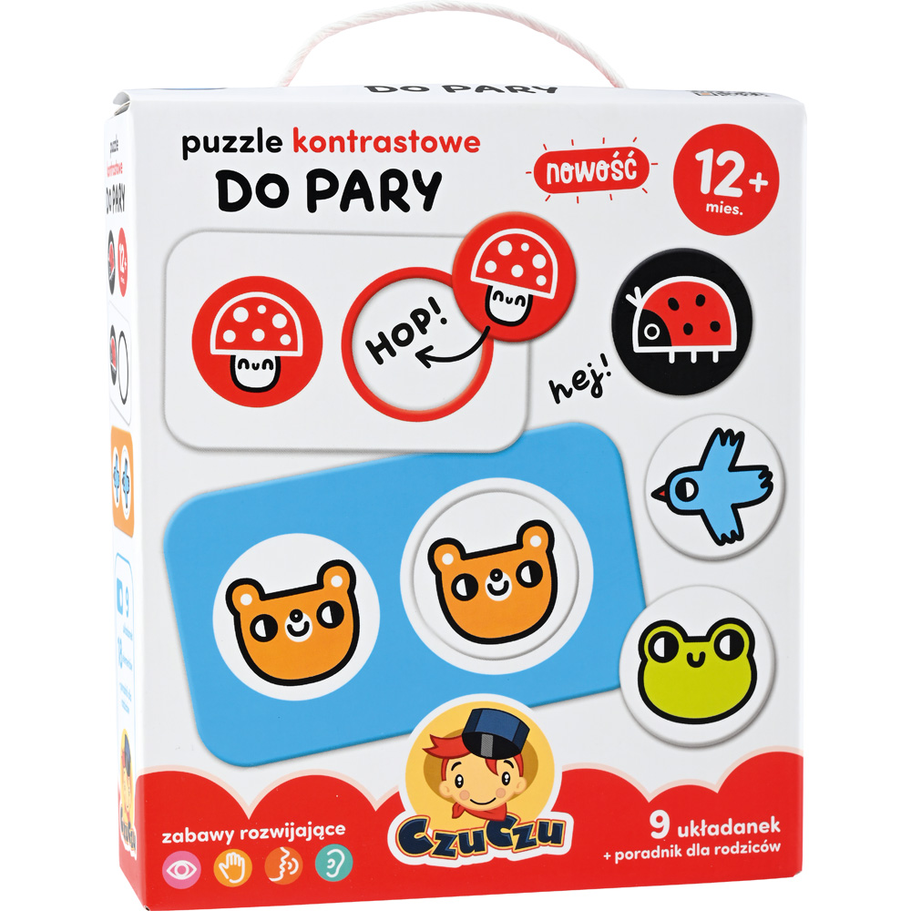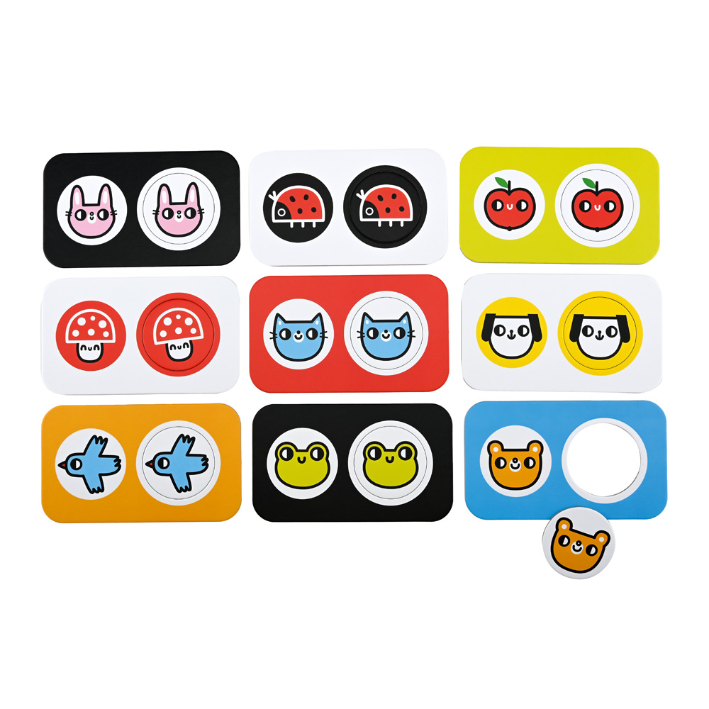 Ein zweiteiliges Kontrast-Puzzle, mit dem das Kind seine Feinmotorik und Wahrnehmungsfähigkeit entwickelt. Die runden Teile können nach Belieben neu arrangiert und für viele kreative Spielaktivitäten verwendet werden. Die Puzzleteile sind so gross, dass sie auch von kleinen Kinderhänden bequem erreicht werden können.
