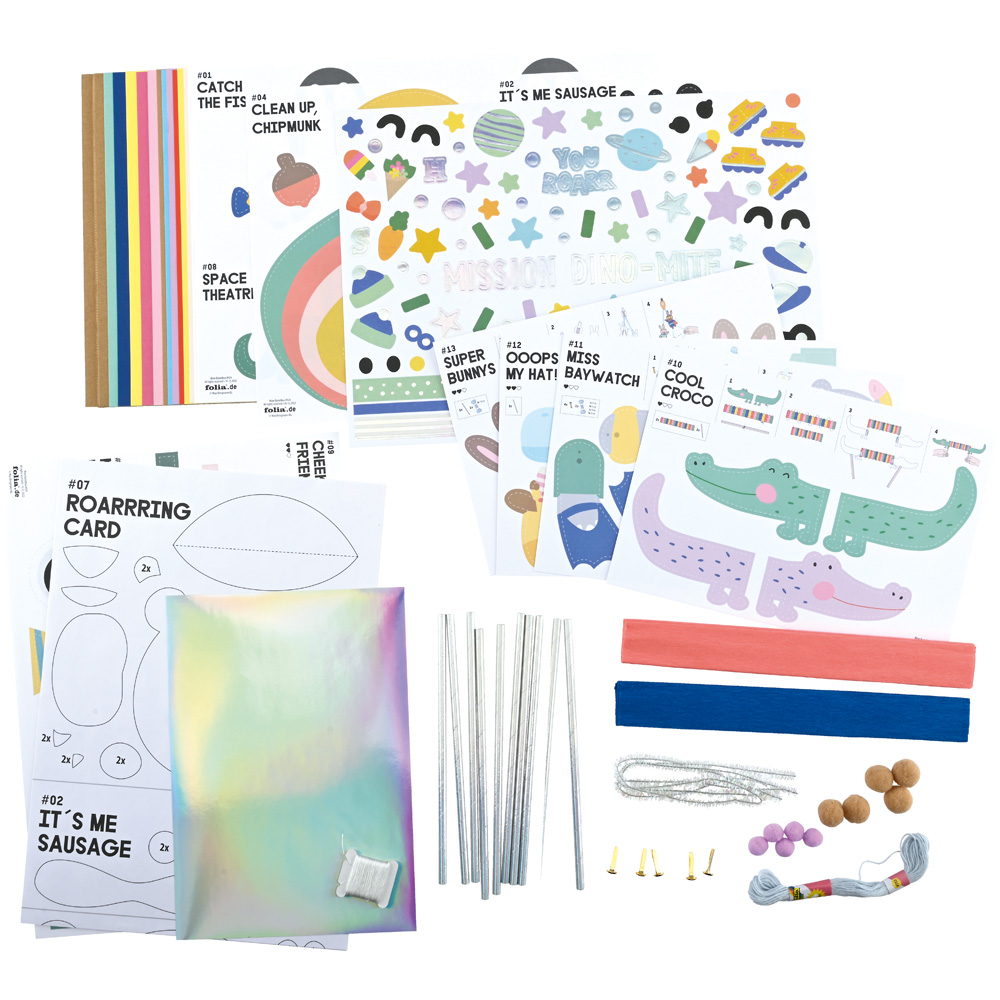 Bastelset mit diversem Material rund um eine Safari. Ob Löwe, Krokodil, eine Sonne oder ein Flugzeug, mit dem ihr zur Safari fliegt, hier könnt ihr eure Ideen umsetzen.