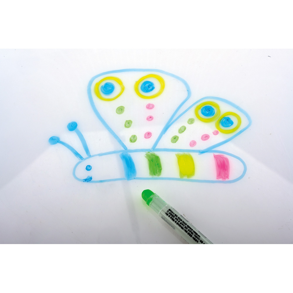 Deckende Flüssigkreide auf Wasserbasis, mit flexibler Pinselmine. Für fast alle glatten Oberflächen wie Glas, Plastik, Metall, Gummi. Ist die Farbe noch feucht, lässt sie sich leicht wieder abwischen.