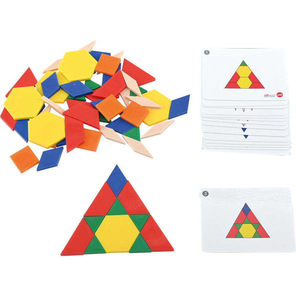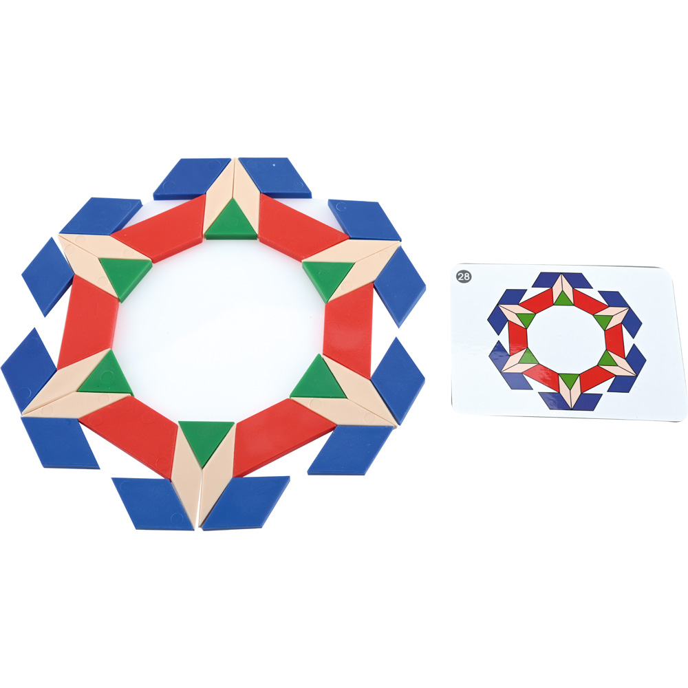 Ein Set mit geometrischen Figuren zum Legen von Mustern und Formen. Die Spieler entdecken, was Symmetrie und Spiegelbilder sind. Die Muster können mit Hilfe der doppelseitigen Aufgabenkarten oder nach eigenen Ideen angeordnet werden.