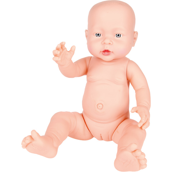 Dieses naturgetreue „Baby“ hilft, den Körper zu entdecken und ein Bewusstsein für den eigenen Körper zu entwickeln. • mit Speckärmchen und Fältchen • Babybauch mit hervorstehendem Bauchnabel • grosser Kopf mit Babybäckchen • anatomische Unterschiede bewusst dargestellt • zwei verschiedene Hautfarben • Puppengrösse: 41 cm • ab 18 Monaten