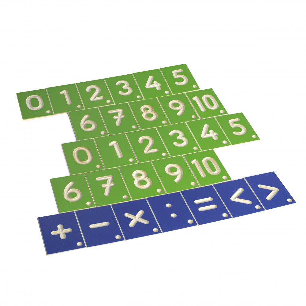 • 29 Teile (2x 1-9; 4x 0; 1x +-:x<>=)