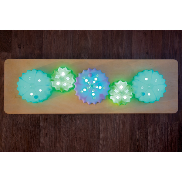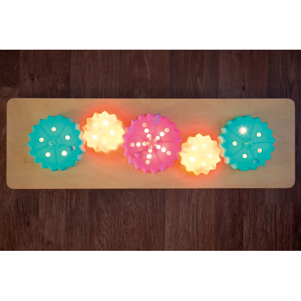 Ein Motorikspiel, das kleine Entdecker begeistern wird. Drehen sie an den bunten Zahnrädern, leuchten diese auf und wechseln ihre Farbe. Entwickelt Feinmotorik und Auge-Hand-Koordination, weckt den Forschergeist. Das Board kann auf Tisch oder Boden genutzt oder an der Wand befestigt werden. 3 Batterien AA erforderlich (nicht enthalten).