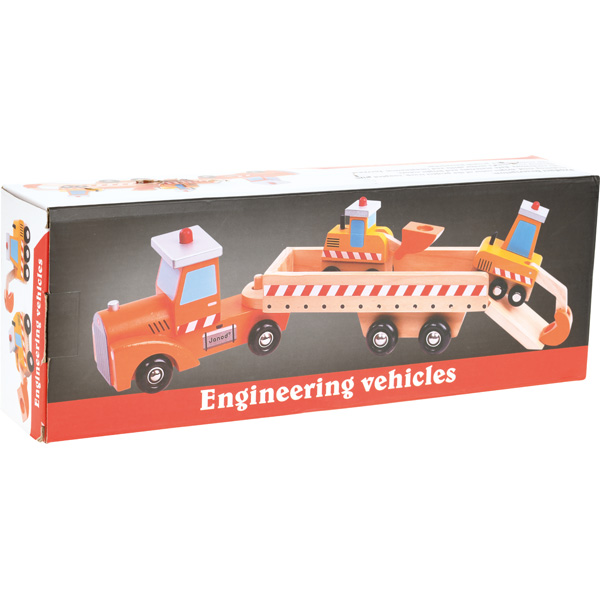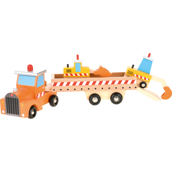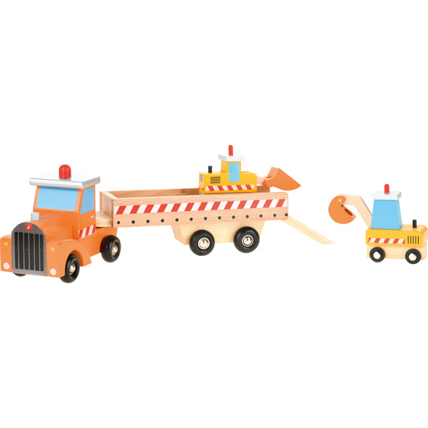 Der LKW mit Anhänger hat auf der Ladefläche 2 Baufahrzeuge für noch mehr Spass beim Spielen.