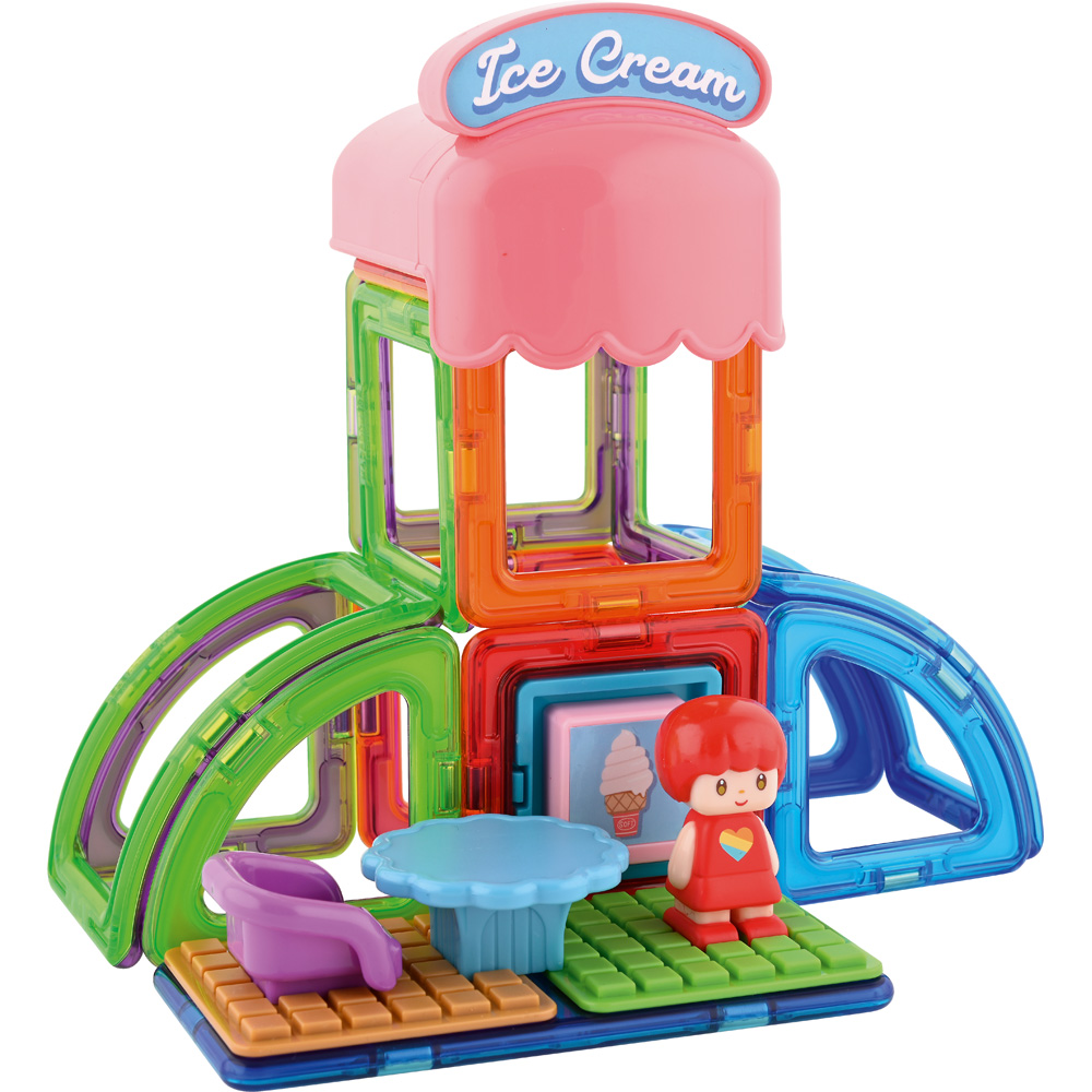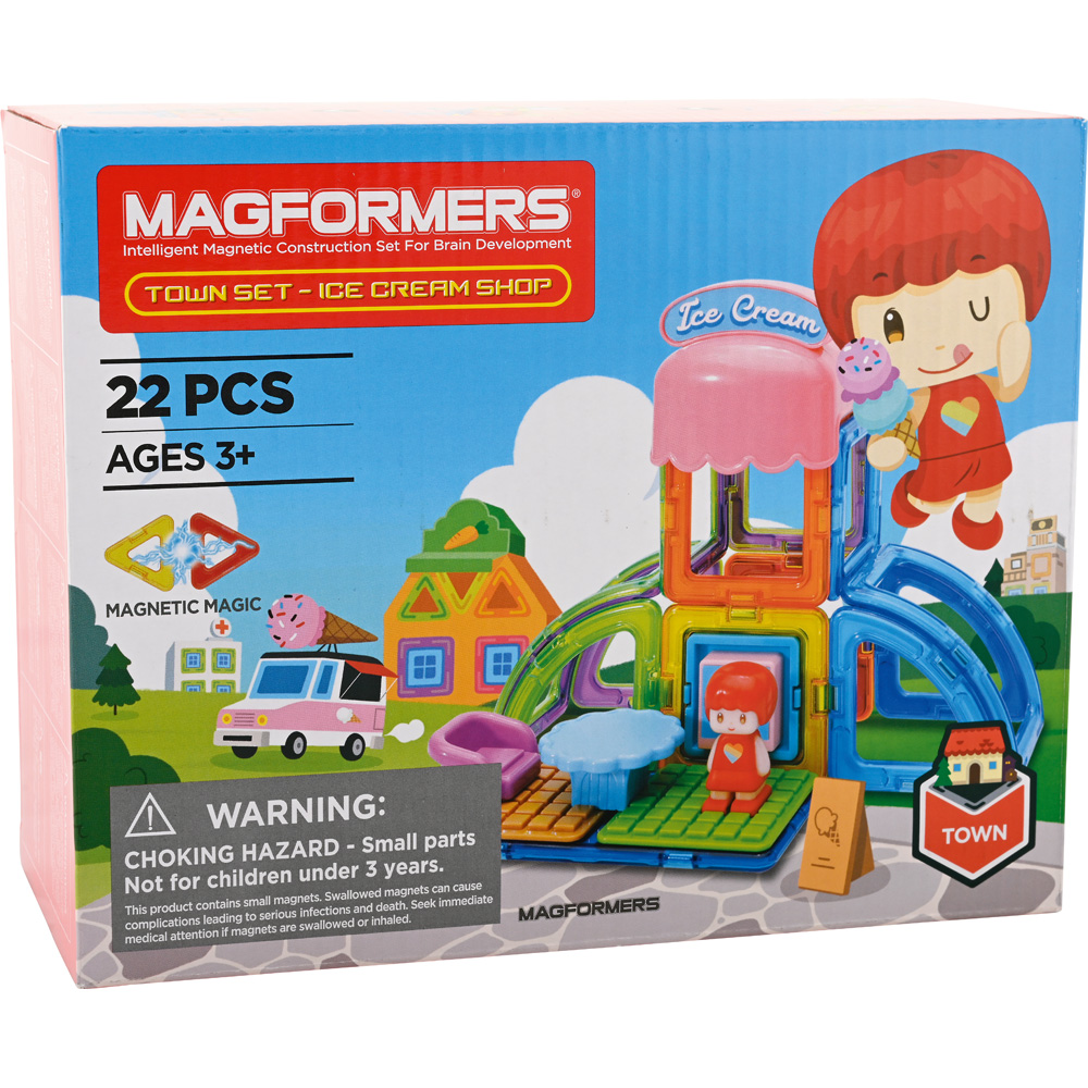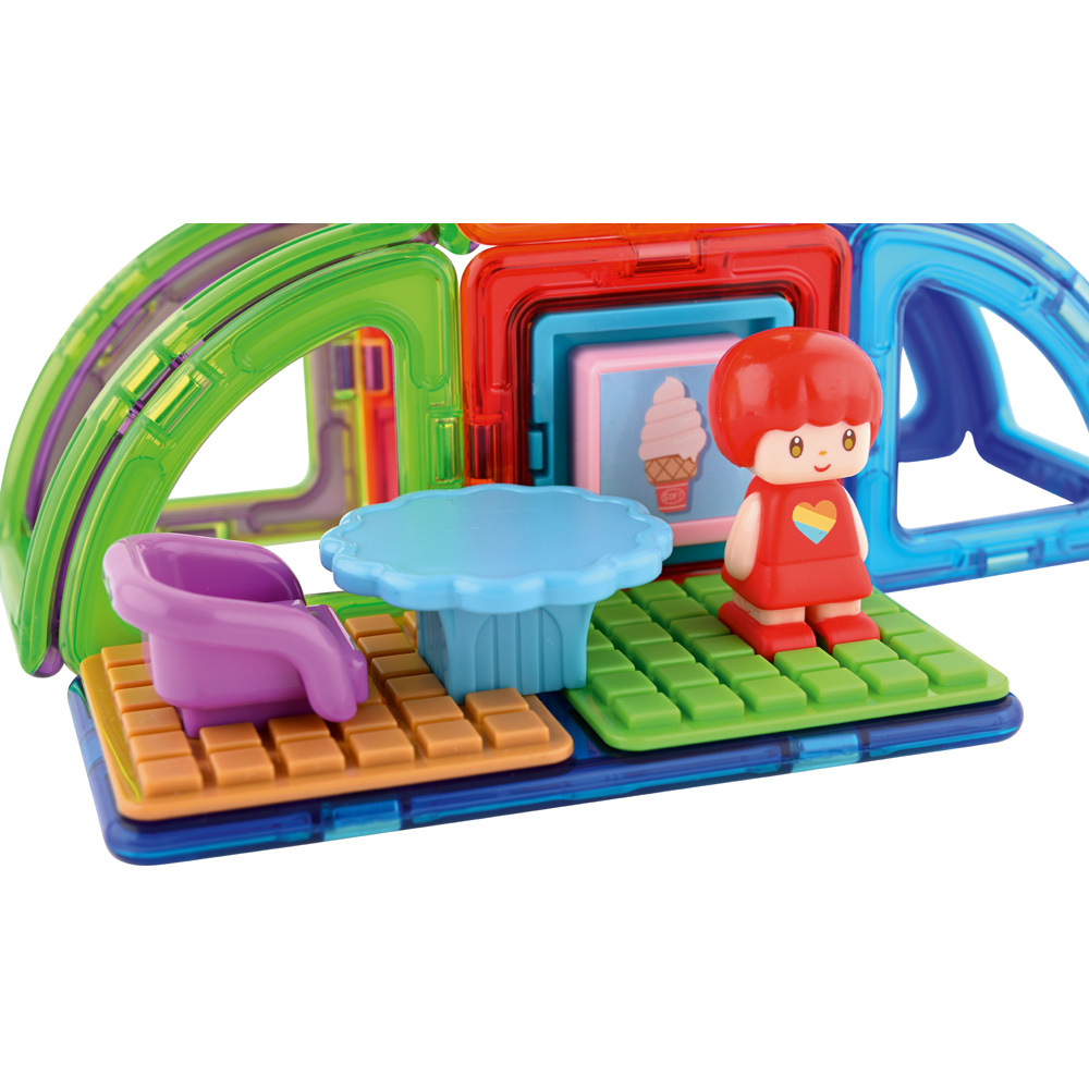 Die Magformers-Bausteinserie besteht aus 5 Sets mit Stadtmotiven: Bank, Stadtbus, Krankenhaus, Eisdiele und Supermarkt (023277-023281, einzeln erhältlich). Durch die Kombination von Gebäuden aus allen Sets können Sie eine ganze Stadt erschaffen. Das Spielen mit Kreativbausteinen fördert die Entwicklung des räumlichen Vorstellungsvermögens, der Feinmotorik, der Problemlösungskompetenz und des kritischen Denkens. Die Bausteine können auch zum Kennenlernen von Farben, Formen und Berufen verwendet werden. Die Sets enthalten zwischen 16 und 22 Elemente. Ausserdem liegt jedem Modell eine Anleitung mit Ideen für verschiedene Konstruktionen bei. In den Bausteinen sind starke Neodym-Magnete eingebaut, die sich sofort gegenseitig anziehen. Die Stadtmotive können nach eigener Vorstellung oder nach Anleitung gebaut werden.
