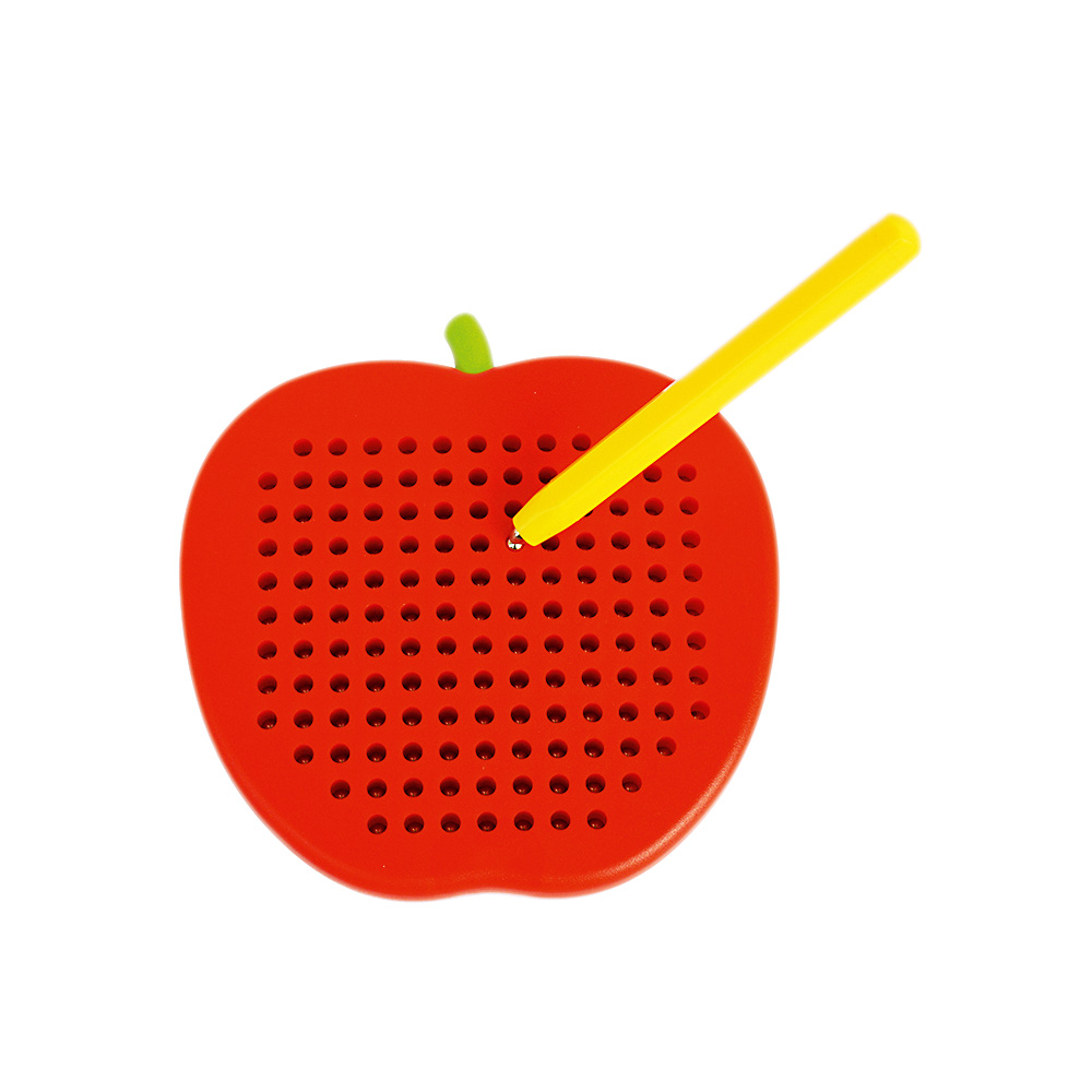 Einfach mag(net)isch! Wie durch Zauberei entstehen auf der Tafel Bilder... Das Zauberwort lautet dabei: MAGNETISMUS. Im Inneren der Tafel befinden sich kleine Metallkügelchen, die mit Hilfe eines Magnetstiftes an die Oberfläche gezogen werden und dort schöne Muster und Bilder formen. Mit den Fingern werden die Bilder dann „wegradiert“ und die Perlen verschwinden wieder aus den Löchern, ins Innere der Tafel. Kleine Fehler werden so ganz schnell behoben und der Spass kann wieder von vorn beginnen. Eignet sich auch für Symmetrie- und Mengenübungen oder für erste Schreibversuche. Spielen und Lernen in Einem. Die Tafel ist vollständig in sich geschlossen und die Kugeln können nicht herausfallen.