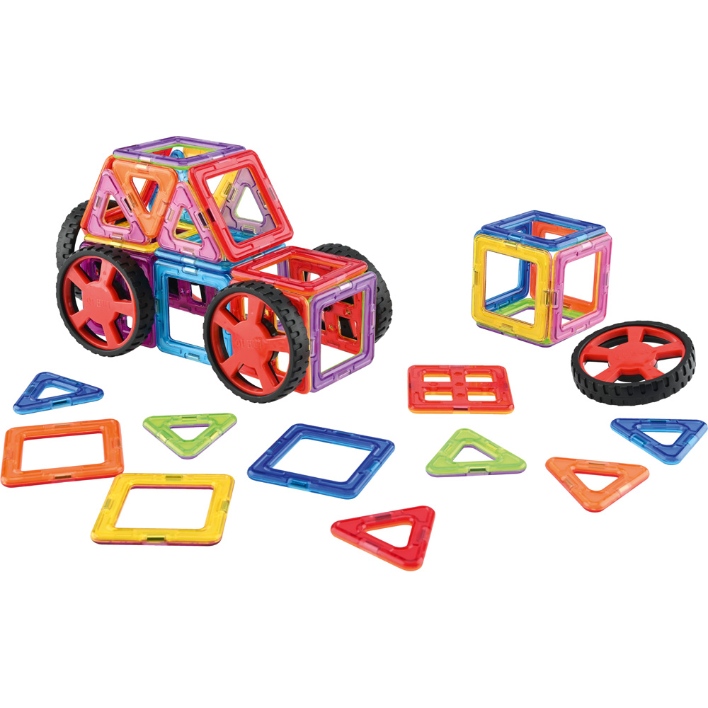 Aus den Dreiecken, Quadraten, Sechsecken und weiteren Formen entstehen einzigartige 3D-Objekte. Die Möglichkeiten sind nahezu unbegrenzt. Schult die Kreativität, das räumliche Vorstellungsvermögen und die motorischen Fähigkeiten. Lehrt Formen und Farben zu unterscheiden.
