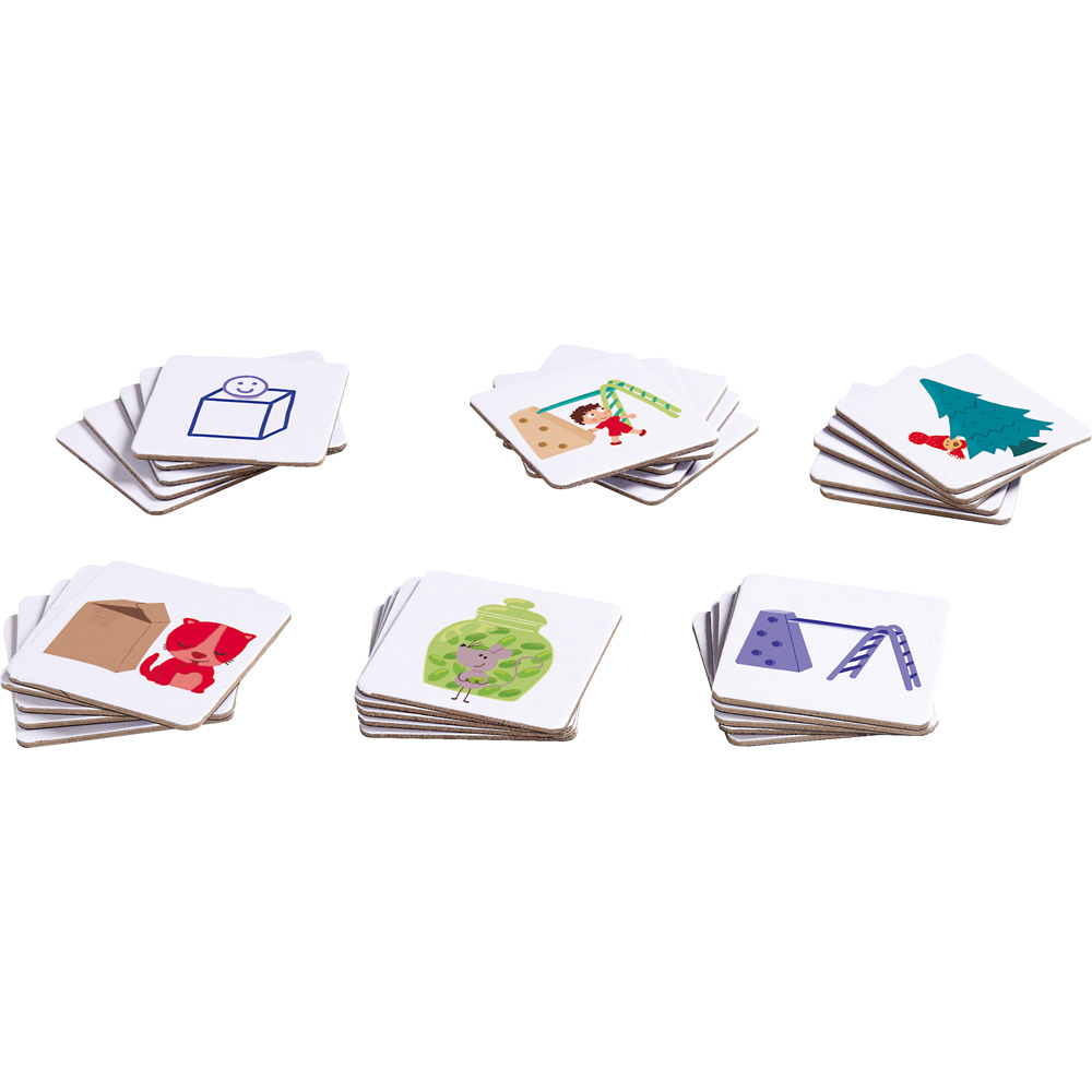 Mit diesen magnetischen Kärtchen lernen Kinder, sich räumlich korrekt zu orientieren. Auf den Magneten sind lustige Kinder und Tiere abgebildet, die sich vor, hinter, auf, unter oder neben bestimmten Objekten befinden. Dies erleichtert das Verständnis von Positionen und Richtungen im Verhältnis zu sich selbst sowie das Unterscheiden von rechts und links.