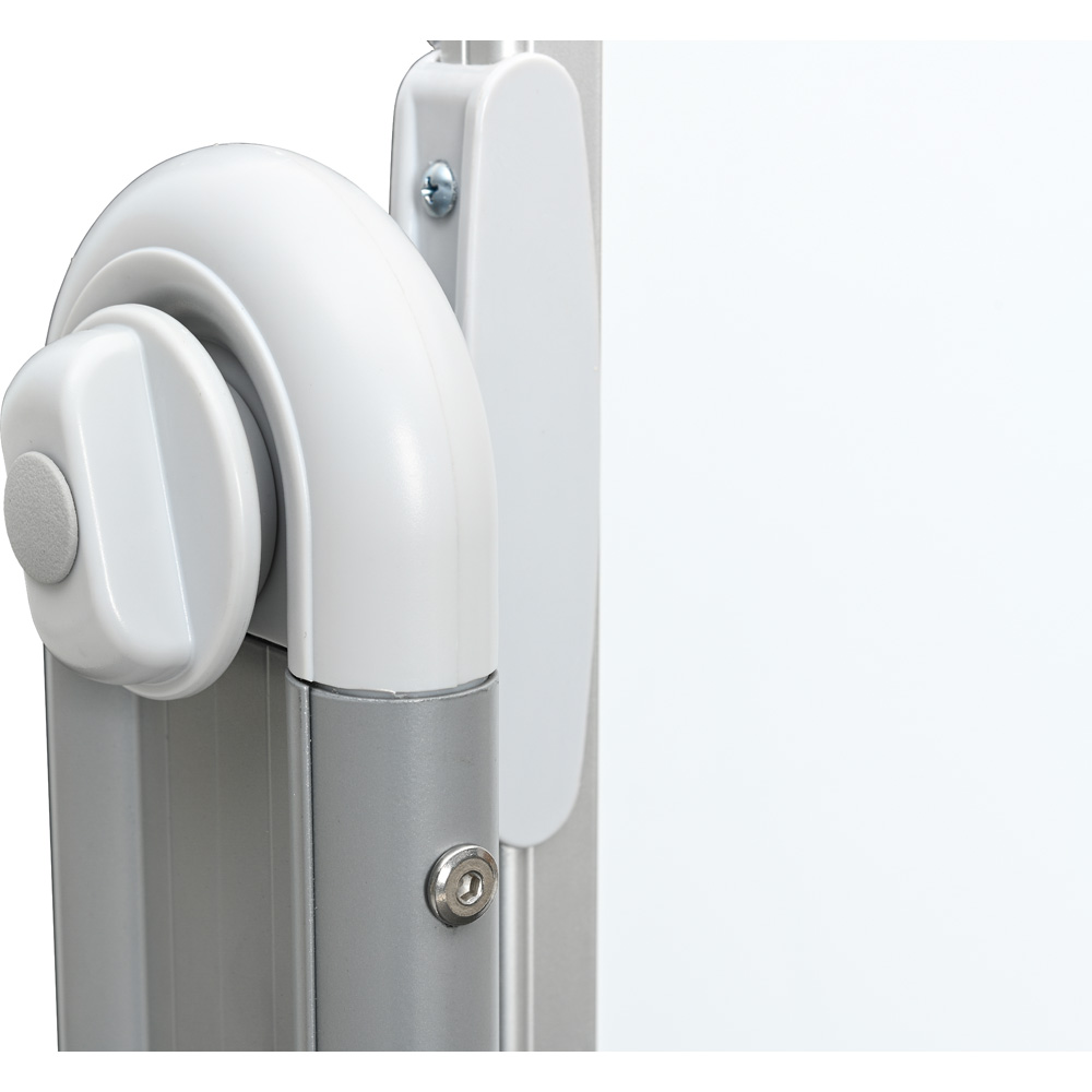 Die zweiseitig beschreibbare Tafel mit Rahmen und Fahrgestell erweist sich als nützlicher Helfer in allen Bildungseinrichtungen. Die vorhandene Ablage ermöglicht die Aufbewahrung von Markern oder Magneten, die während des Gebrauchs verwendet werden.