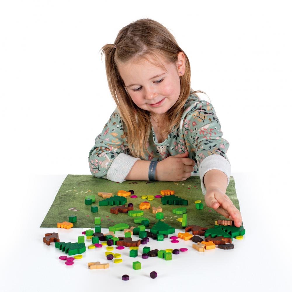 Verschiedene Formen und Farben aus Wald und Flur, laden zum ausdauernden Legen von unendlich vielen Mandalas ein. Im Set enthalten ist eine bunt gestaltete Spielmatte mit einem feinen Liniennetz, das beim gleichmässigen Auflegen hilft.