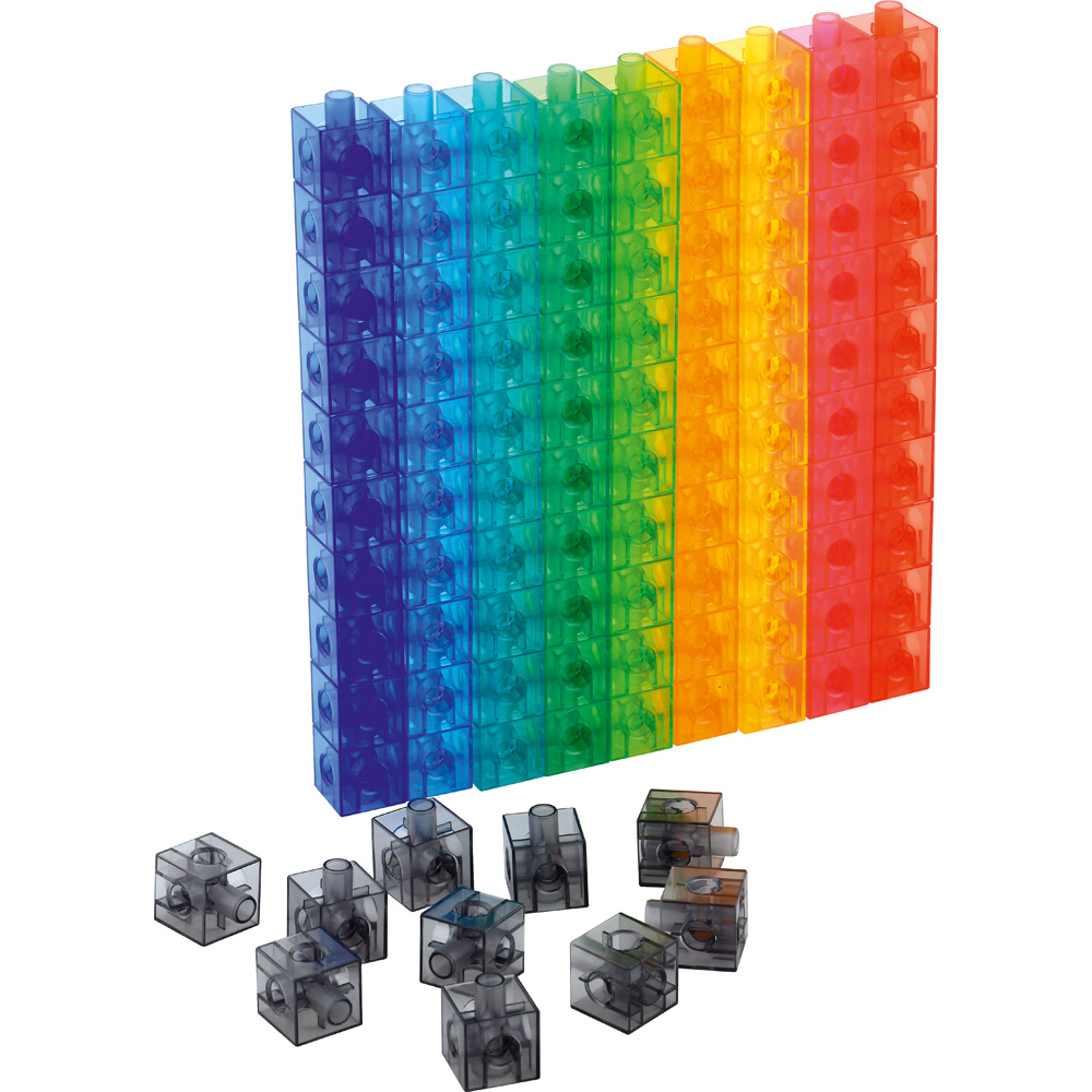 Konstruktionsspielzeug für frühe Mathematik. Durch einfaches Zusammenstecken der farbigen Würfel können die Kinder endlos kreativ sein. Es lassen sich geometrische Muster, Formen und fantasievolle Bilder zaubern. Zählen, Rechnen, Sortieren machen mit den bunten Würfeln Spass. Das Erlernen von Farben wird gefördert, logisches Denken und die Auge-Hand-Koordination werden geschult. Da das Material transparent ist, kann das Kind das Licht beobachten, das durch den Würfel dringt. Die Würfel lassen sich von allen Seiten zusammenstecken. Für Einzel- und Gruppenaktivität.