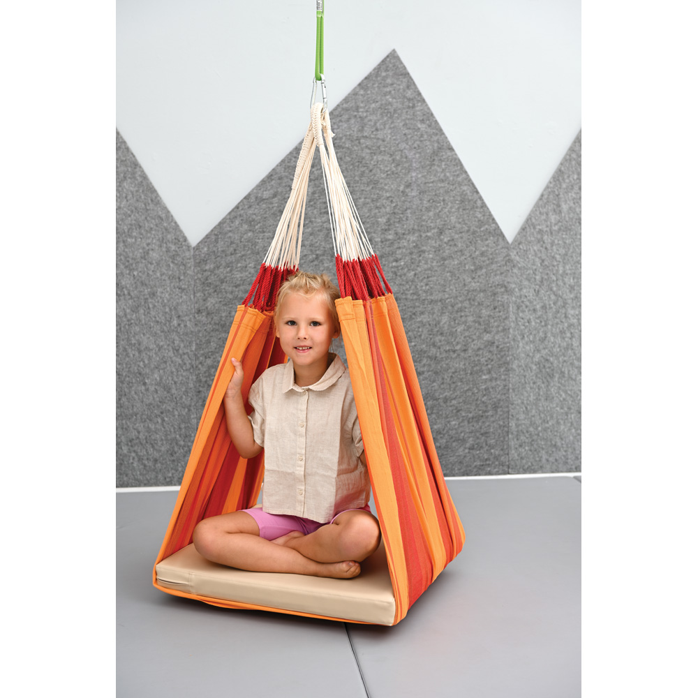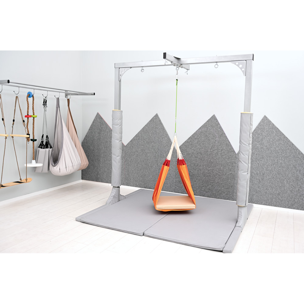 Zur Anbringung des Hängesitzes im SI-Therapiezentrum (092994) benötigen Sie je 1 Karabinerhaken (199134) und 1 Verlängerungsseil (199135 oder 199136), wahlweise 1 Drehgelenk (199133); separat zu bestellen.