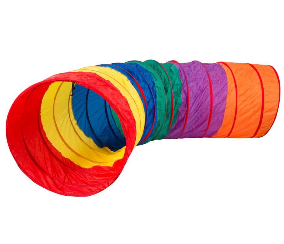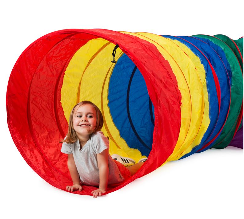 Mit einem beeindruckenden Durchmesser von 91,40 cm und einer Länge von 370 cm bietet der Tunnel besonders viel Platz für Bewegung und Abenteuer. Das leuchtende 6-Farben-Design und das höhlenartige Innere machen ihn visuell ansprechend und regen die Fantasie der Kinder an. Der Megatunnel lässt sich flach zusammenlegen, mit vier Druckschlaufen sichern und in der mitgelieferten Tasche bequem und platzsparend verstauen.