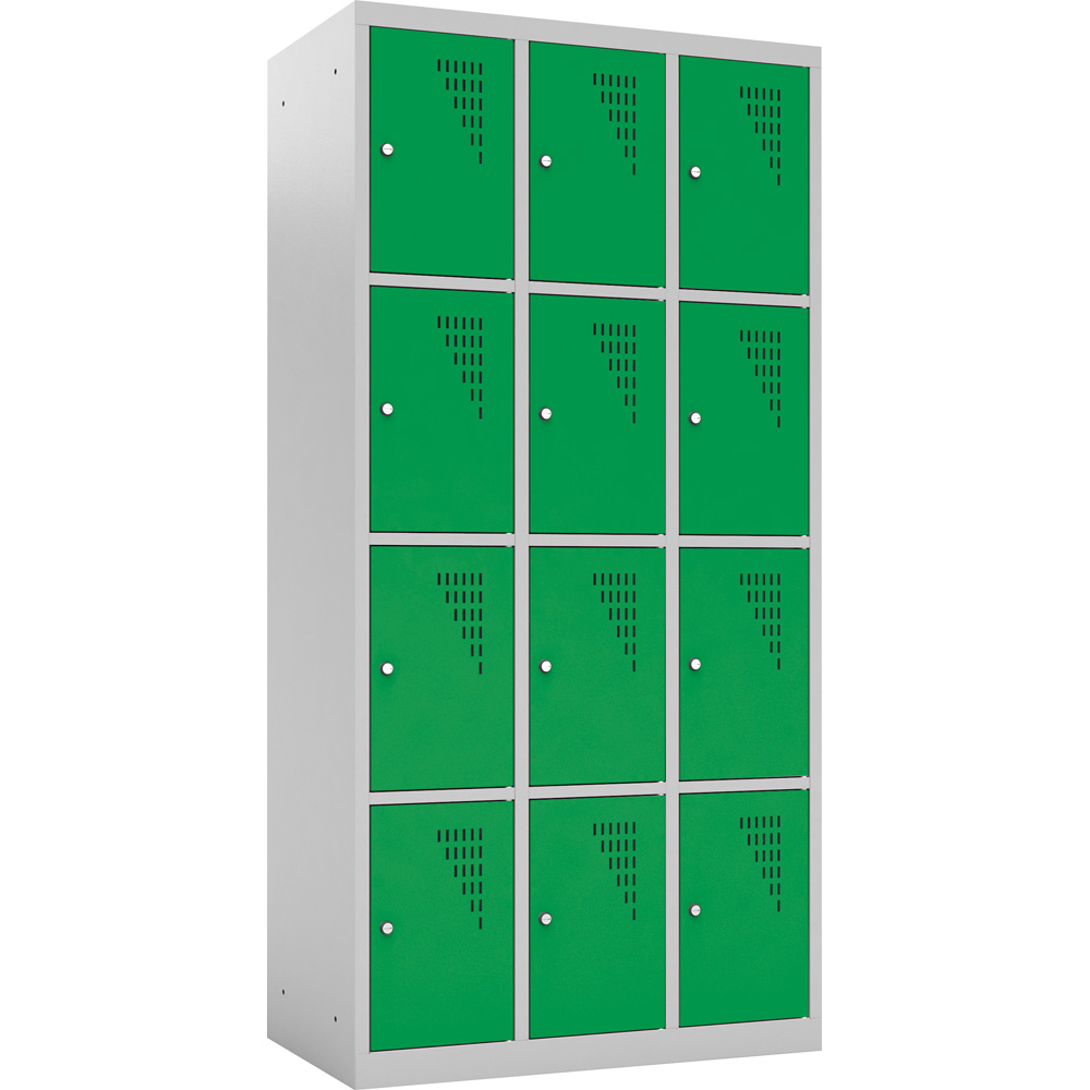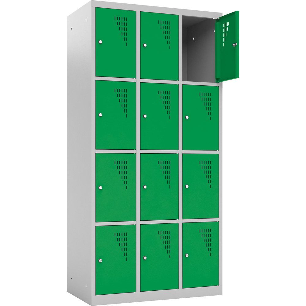 Aus pulverbeschichtetem Stahlblech, mit Lüftungsschlitzen in den Türen und Platz für Namensschilder. Ein Schloss sorgt für Sicherheit; 1-Punkt-Verriegelung. 2 Schlüssel pro Tür. Geräumige Fächer zum Aufbewahren von Büchern und Taschen.