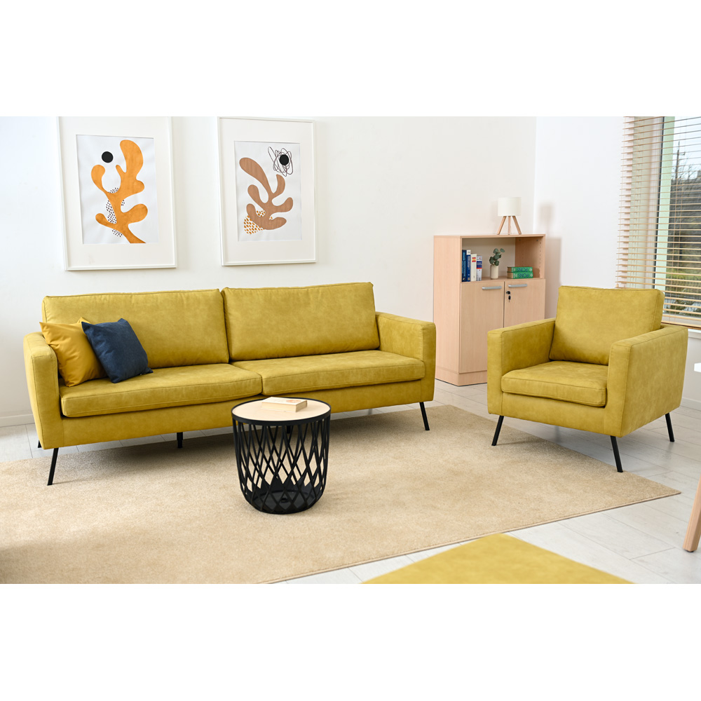 Die Polstermöbelserie Miami ist eine grossartige Wahl, um moderne Aufenthaltsbereiche einzurichten. Stilvolle Sessel und Sofas mit schlanken, schwarzen Metallbeinen schaffen eine gemütliche sowie ästhetisch ansprechende Atmosphäre. Der Bezugsstoff ähnelt Kunstleder und ist damit robust und pflegeleicht. Daher eignen sich die Möbel insbesondere für Schulen und öffentliche Räume.