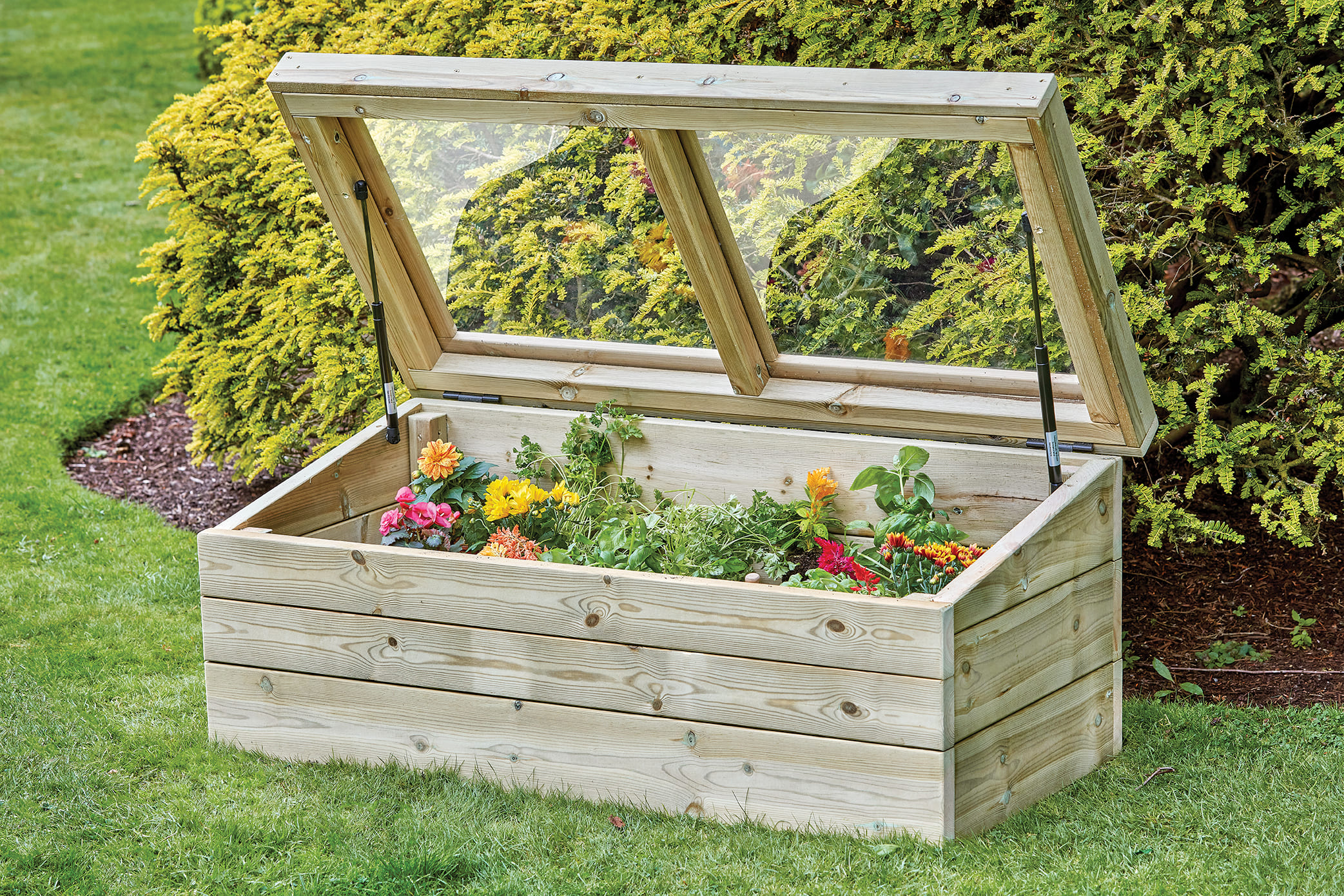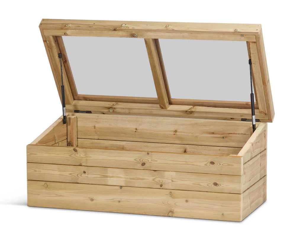 Dieses Mini-Gewächshaus lässt sich nach oben öffnen. Es gehört zur Möbelkollektion Natura Elegant und ist die perfekte Ergänzung für den Aussenbereich. Der durchsichtige Deckel ermöglicht es Kindern, das Wachstum der Pflanzen zu beobachten und zu sehen, wie sie zu neuem Leben erwachen. Integrierte Gasdruckfedern halten den Deckel in geöffneter Position und ermöglichen ein kontrolliertes Schliessen. Der Innenboden ist herausnehmbar und kann angehoben werden, um an kleinere Pflanzen heranzukommen. Teil der Little Green Fingers Kollektion.
