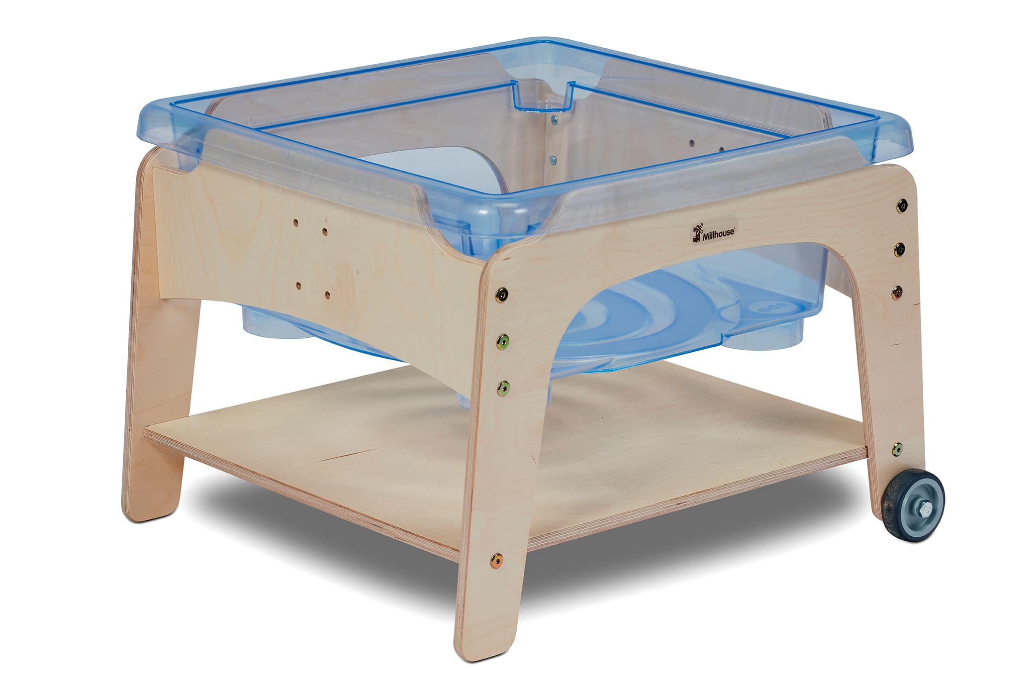 Das kompakte Design des Mini-Sand- und Wasserspiel-Tisches ist ideal für kleinere Räume. Hergestellt aus hochwertigem Birkensperrholz.