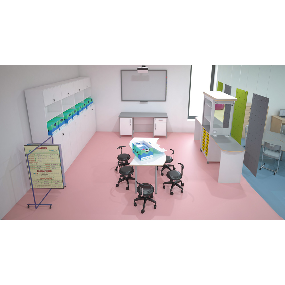 Die Möbelkollektion Grande besteht aus modernen Möbeln, die primär an die Bedürfnisse der Schulen angepasst sind. Die Möbel sind aus laminierter Spanplatte (Stärke: 18 mm) in Ahorn-Optik oder weiss. Türen und Schubladenfronten sind ebenfalls in Ahorn-Optik oder weiss und zusätzlich in grau erhältlich.