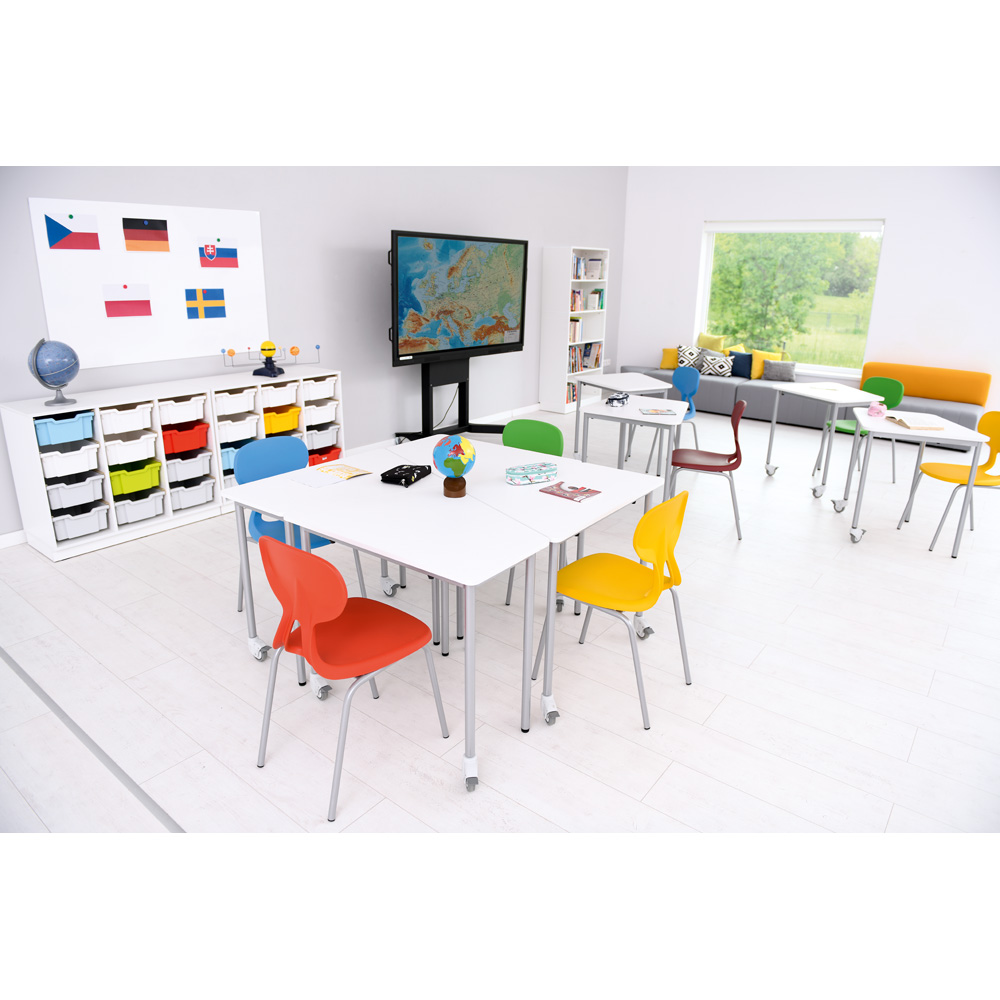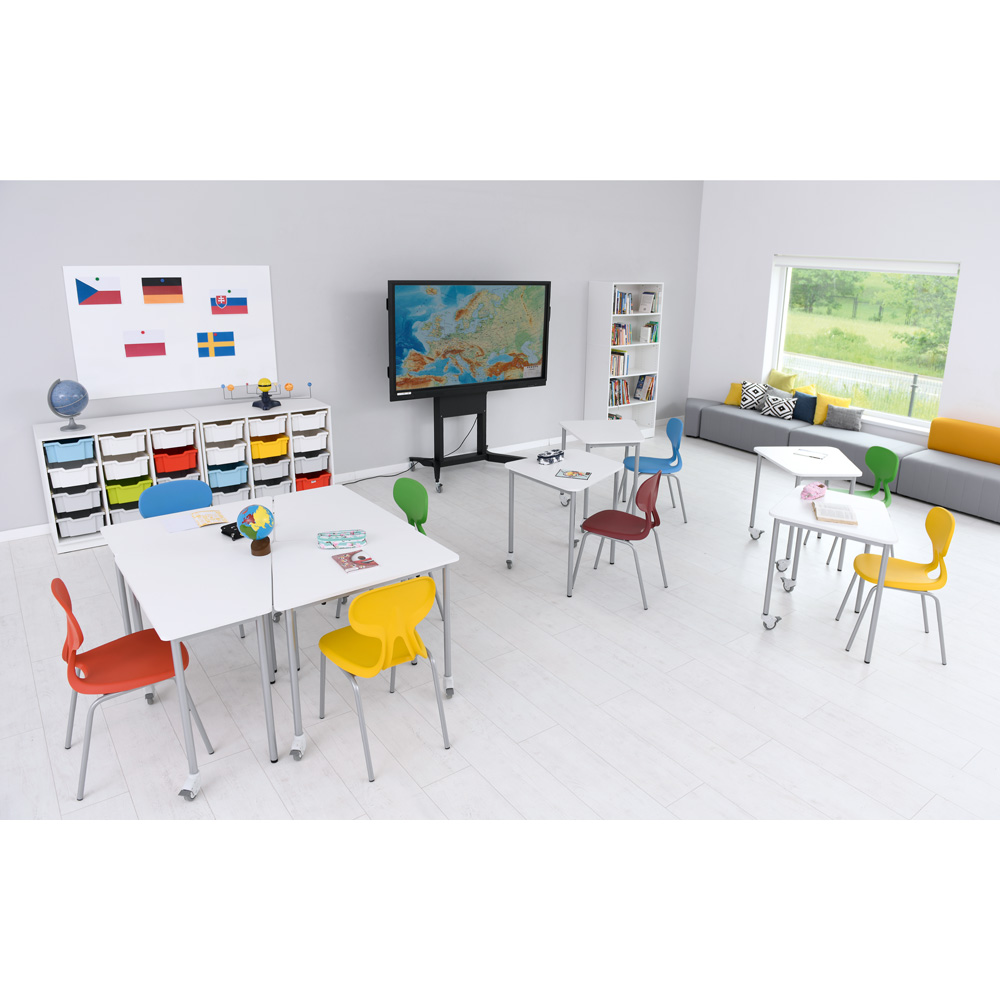 • aus laminierter Spanplatte (Stärke: 18 mm), wahlweise in Ahorn-Optik oder weiss