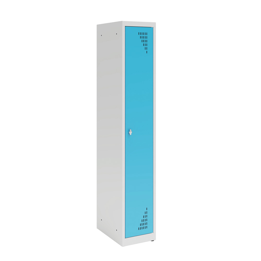 Stabiler Metallspind aus Stahlblech, verschweisst. Jedes Modul verfügt über eine Kleiderstange und 2 Kleiderhaken. Jedes Fach mit Riegel zum Anbringen eines Vorhängeschlosses, Vorhängeschloss ist nicht im Lieferumfang enthalten. Mit Lüftungsschlitzen in den Türen und Platz für Namensschilder.