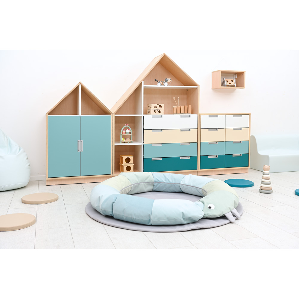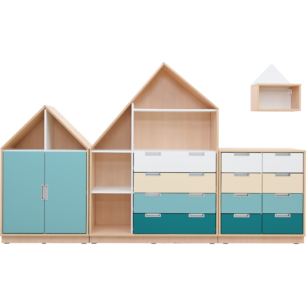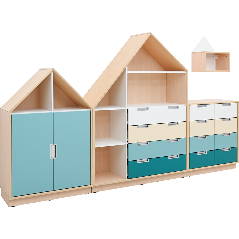 • Schubladen: weiss, hellelfenbein, pastelltürkis, meerfarben