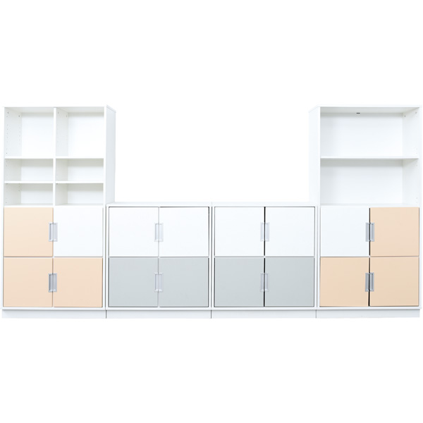 Für unsere Kollektion verwenden wir weiss laminierte Spanplatte. Das natürliche Dekor kann mit Fronten aus farbig folierter MDF-Platte (Stärke 18 mm) ergänzt werden. Schubladen und Türen verfügen über Muschelgriffe, alufarben.