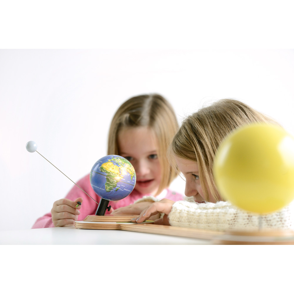 Das Tellurium ist ein Modell zur Darstellung der Bewegungen von Erde und Mond und dient der anschaulichen Erklärung von Phänomenen wie Tag und Nacht, Sommer und Winter und der Mondphasen. Mithilfe der Taschenlampe, die in die Sonne eingelegt wird, und einer Figur, die an der Erdkugel befestigt werden kann, lassen sich die drei wichtigsten Drehbewegungen in unserem Sonne-Erde-Mond-System (Rotation der Erde um ihre eigene Achse, Drehung des Mondes um die Erde, Bewegung der Erde um die Sonne) und deren Auswirkungen demonstrieren: Wie fällt der Schatten zu welcher Tageszeit? In welcher Himmelsrichtung geht die Sonne auf und unter? Wie entstehen die Jahreszeiten, Polartag- und Polarnacht, Tag- und Nachtgleiche oder Sonnen- und Mondfinsternis?