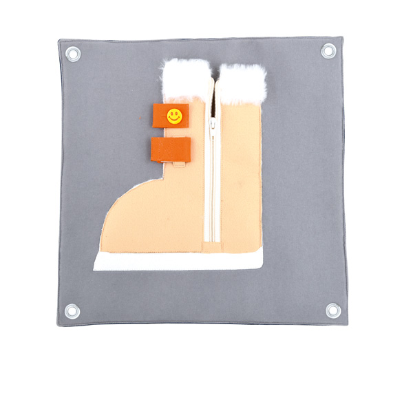 Das möchte ich allein können! Ob Schnüren, Schleifebinden oder Fädeln – unsere Motorik-Textilpaneele unterstützen die Kinder auf ihrem Weg in die Selbstständigkeit, fördern Feinmotorik und Bewegungskoordination. Thematisch befassen sich die Tafeln auch mit mathematischen Grundkenntnissen, dem Lesen der Uhr, dem Erkennen von Farben und Formen uvm. Hier findet jedes Kind eine Beschäftigung! Die Paneele in Sets (082030 und 082037) lassen sich mit Druckknöpfen einfach miteinander verbinden. Einzelpaneele (082024-082029, 082031-082036) sind mit Ösen in den Ecken versehen, sie haben keine Druckknöpfe.