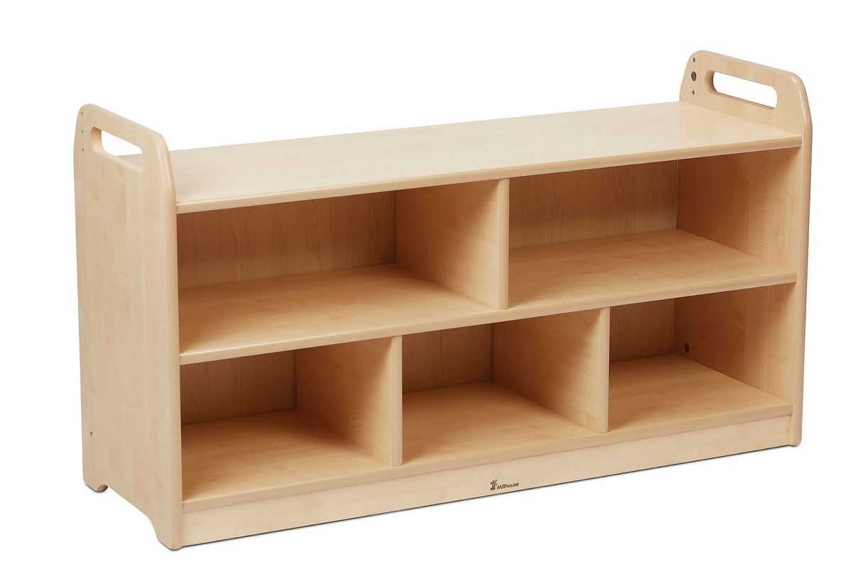 Offenes Aufbewahrungselement für maximale Vielseitigkeit im Frühpädagogik-Bereich.