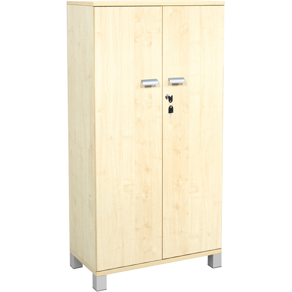 Aus laminierter Spanplatte in Ahorn-Optik (Korpuswände: 25 mm; Einlegeböden: 18 mm); mit stabilen, quadratischen Metallfüssen, stufenlos höhenjustierbar (bis 25 mm). Die Schränke OPTO sind in unterschiedlichen Höhen und wahlweise abschliessbar lieferbar.