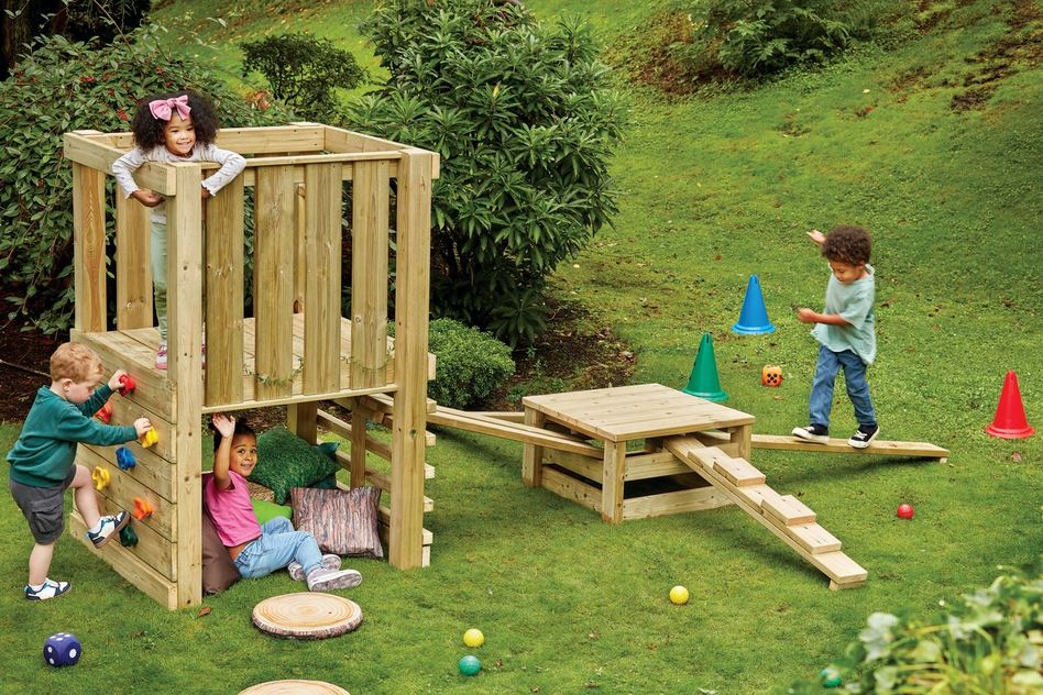 Mit zwei Plattformen - darunter eine erhöhte Plattform mit einer Höhe von 100 cm - lässt sich das Set immer wieder neu konfigurieren, sodass der Spielwert langfristig erhalten bleibt. Alle Elemente können zudem einzeln genutzt werden.