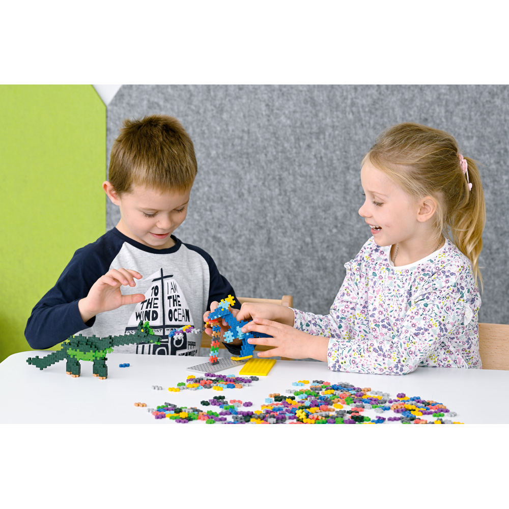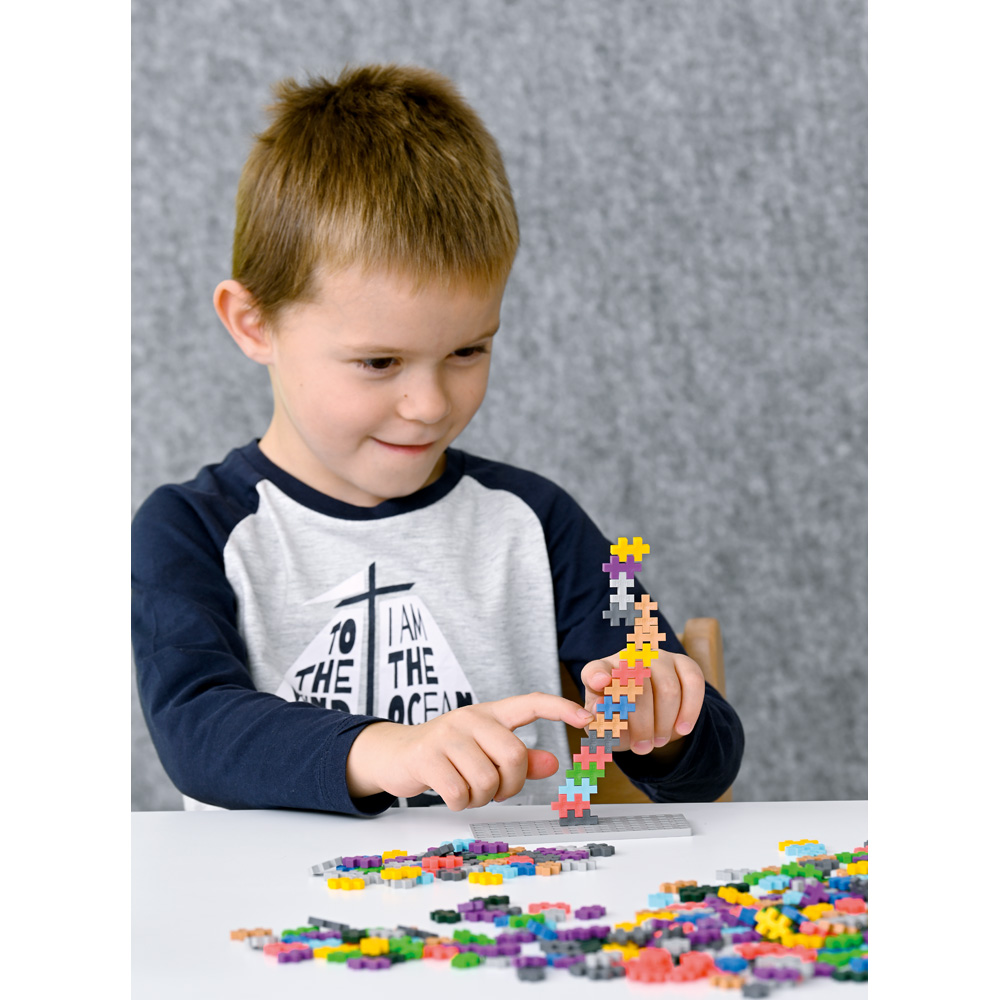 Ein Baustein ist wie 2 zusammenhängende Plus-Zeichen geformt. Die Kinder werden angeregt, kreative und originelle Formen entstehen zu lassen. Das Spiel mit Bausteinen fördert das abstrakte und dreidimensionale Denken, denn das freie Spiel ist für die Entwicklung des Kindes wichtig. Die Bausteine dienen auch der Förderung mathematischer und naturwissenschaftlicher Kenntnisse und regen die Fantasie an. Die Bausteine können flach oder dreidimensional miteinander gesteckt werden.