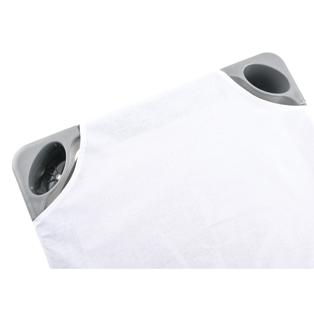 Passend für Kindergartenbetten (501001, 501013). Elastische Ecken ermöglichen das Stapeln, ohne dass die Laken abgenommen werden müssen. Das Spannbettlaken ist im eingezogenen Zustand locker und wird durch die Matratze (101343–101346, 101883, separat erhältlich) auf dem Bettchen festgezogen.