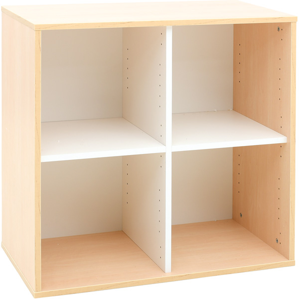 • aus laminierter Spanplatte (Stärke 18 mm) in Ahorn-Dekor (Korpus) und weiss (Rückwand)