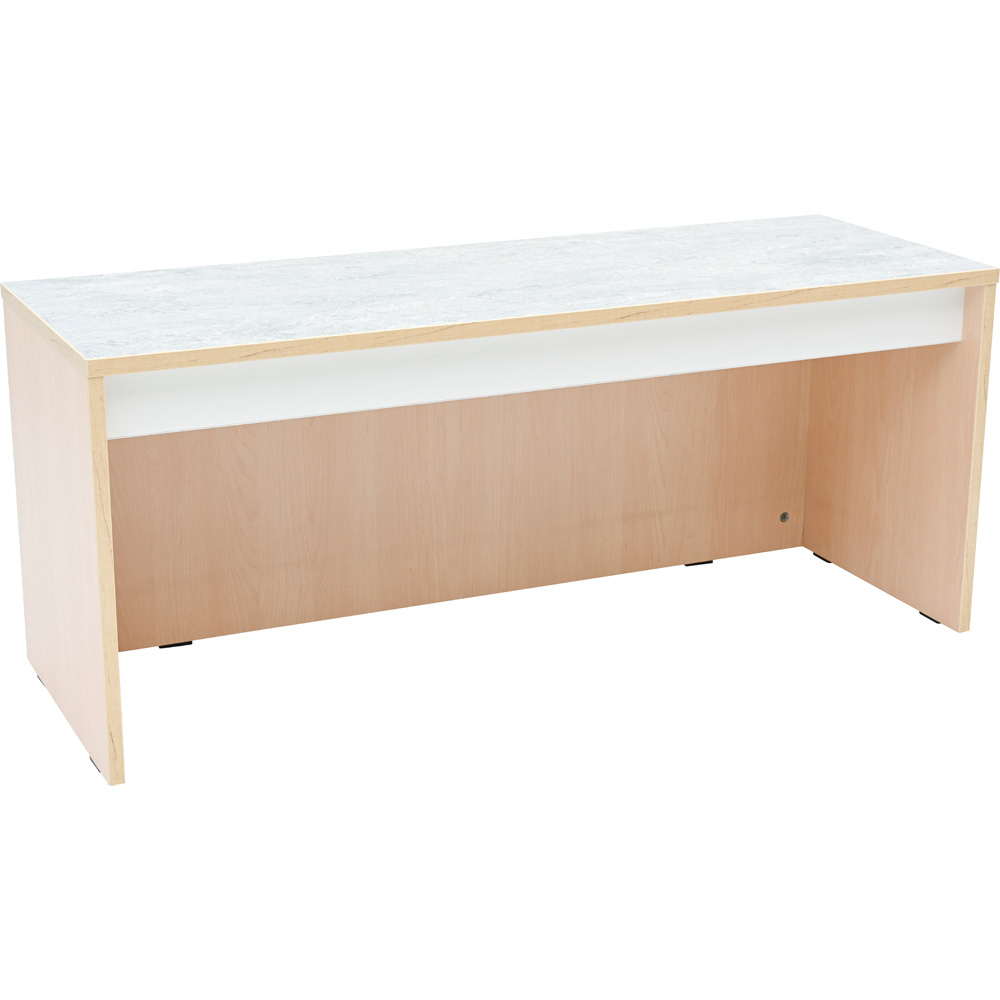 • aus laminierter Spanplatte (Stärke: 18 mm), Korpus wahlweise in Ahorn-Dekor oder Weiss, Blende stets weiss
