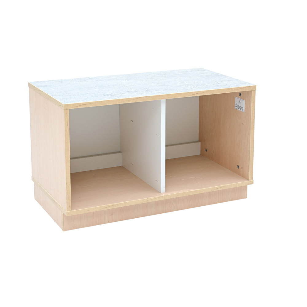 Quadro Flüsterschränke S lassen sich hervorragend zu Raumteilern kombinieren. Dank der Linoleumoberfläche können die Kinder sie als Spieltisch benutzen. Das Material fühlt sich auf der Haut sehr angenehm an – warm und nachgiebig. Zudem ist Linoleum robust, pflegeleicht, antistatisch und besonders hygienisch. Es besteht fast vollständig aus nachwachsenden Rohstoffen. Die schalldämpfende Eigenschaft von Linoleum macht sich besonders beim Spiel mit Bausteinen oder Autos bemerkbar und sorgt für ein ruhigeres und entspannteres Umfeld. Die niedrigen Flüsterschränke können offen benutzt oder mit Türen oder kleinen Schubladen ergänzt werden. Sie sind nicht für Aufsatzregale geeignet.