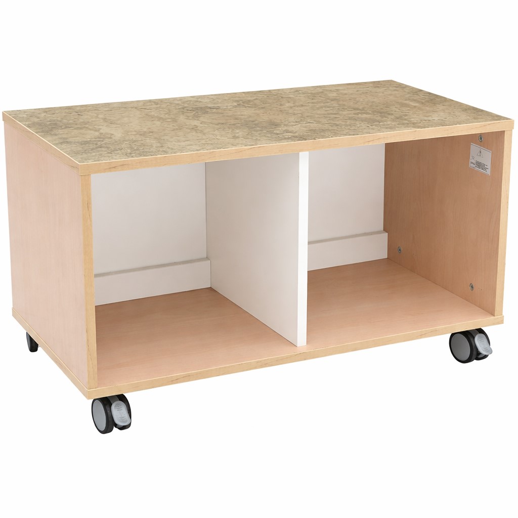 Quadro Flüsterschränke S lassen sich hervorragend zu Raumteilern kombinieren. Dank der Linoleumoberfläche können die Kinder sie als Spieltisch benutzen. Die schalldämpfende Eigenschaft von Linoleum macht sich besonders beim Spiel mit Bausteinen oder Autos bemerkbar und sorgt für ein ruhigeres und entspannteres Umfeld. Das Material fühlt sich auf der Haut sehr angenehm an – warm und nachgiebig. Zudem ist Linoleum robust, pflegeleicht, antistatisch und besonders hygienisch. Es besteht fast vollständig aus nachwachsenden Rohstoffen. Die niedrigen Flüsterschränke können offen genutzt oder mit Türen oder kleinen Schubladen ergänzt werden. Sie sind nicht für Aufsatzregale geeignet.