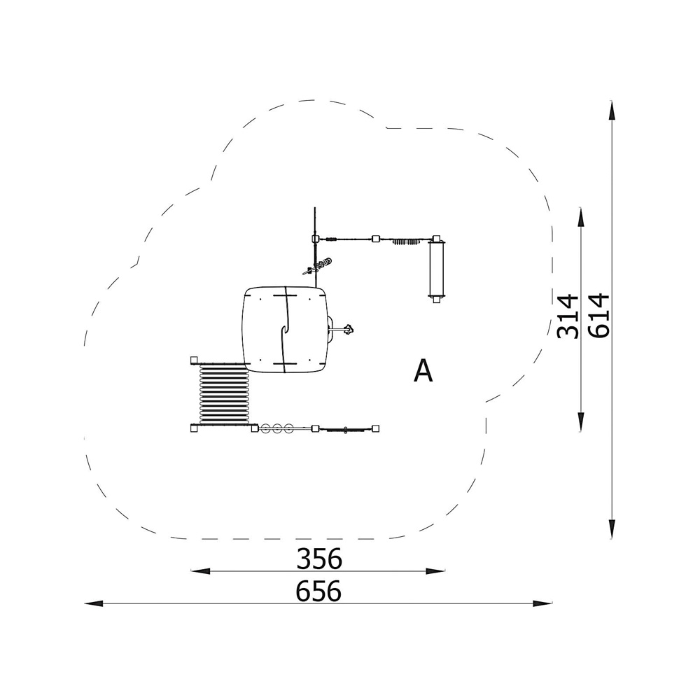 • Sicherheitsbereich: 654 x 621 cm (Fläche: 32 m²)