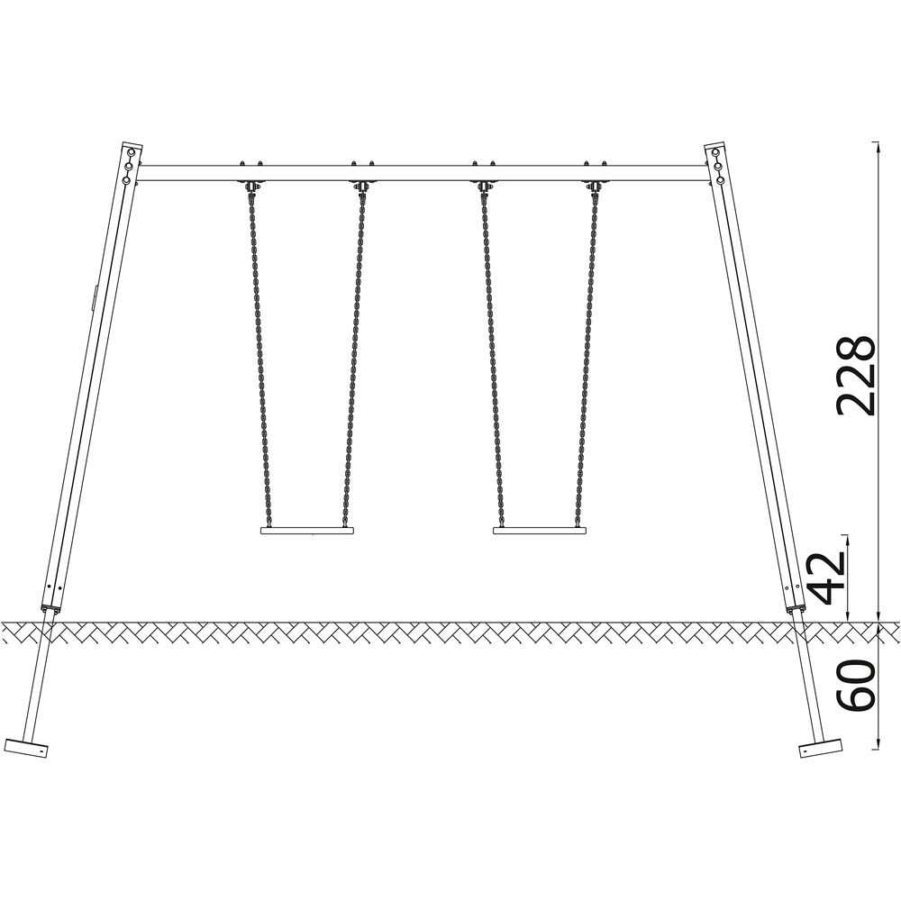 Die abgebildeten Schaukelsitze sind nur symbolisch. Schaukelgestell und Schaukelsitz sind (bis auf wenige Ausnahmen) immer separat zu bestellen. Sie können die Sitze frei wählen und kombinieren, verfügbare Varianten: Standard-Schaukelsitz (NV9001), Kleinkindsitz (NV9002), Storchennest (NV9004). Das Storchennest lässt sich nur an einem Doppel-, 3er- oder 4er-Schaukelgestell (anstelle von 2 Einzelsitzen) montieren. Schaukeln mit Eltern-Kind-Sitz werden nur als fertiges Set aus Gestell und Sitz angeboten, da der Eltern-Kind-Sitz eine besondere Gestellbreite benötigt. Unsere Aussenspielgeräte müssen, bis auf wenige Ausnahmen (am Produkt vermerkt), einbetoniert werden. Geringfügige Abweichungen in Abmassen und Konstruktion aufgrund technischer Verbesserungen sind bei allen Geräten möglich. Für die Lieferung unserer Aussenspielgeräte fallen gestaffelte Frachtkosten an. Die Montage ist nicht im Preis enthalten.