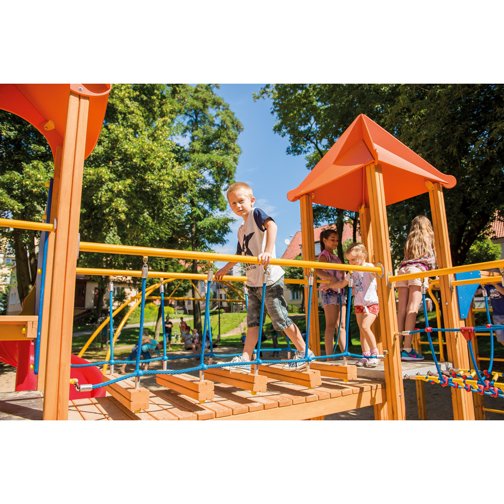 Abtauchen in die Welt der Fantasie und spannende Abenteuer erleben. Die Spielplatz-Serie Quadro bietet vielfältigen Spielspass, auch schon für die Allerkleinsten (Quadro Baby). Die bunten Spielwände dienen auf den Anlagen als Brüstung und laden zum Verweilen ein. Kleine und grosse Weltentdecker finden hier etwas Passendes. Dabei trainieren sie neben ihrer Körperbeherrschung zugleich auch ihre Feinmotorik. Die Anlagen der Kollektion Quadro bestehen aus hochwertigen Materialien, die eine lange Haltbarkeit garantieren. Sie eignen sich besonders für Kindergärten, Quadro Baby mit seinen niedrigen, rutschfesten Podesten, kleinen Rutschen und Rampen mit flacher Neigung auch für Kinderkrippen. Alle Geräte entsprechen DIN EN 1176 und sind zertifiziert, erfüllen somit die Voraussetzungen für den öffentlichen Bereich. Wir gewähren 2 Jahre Garantie.