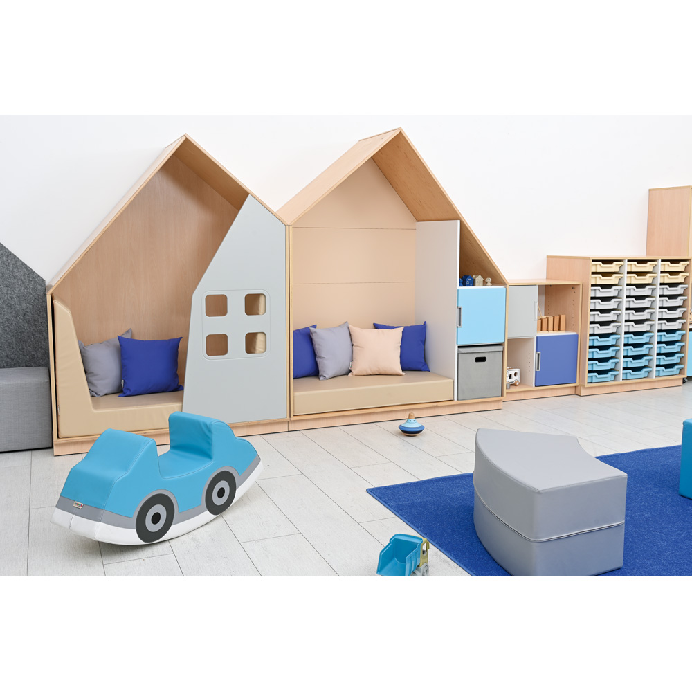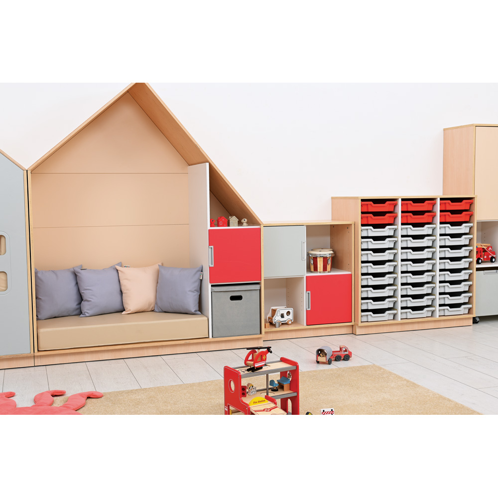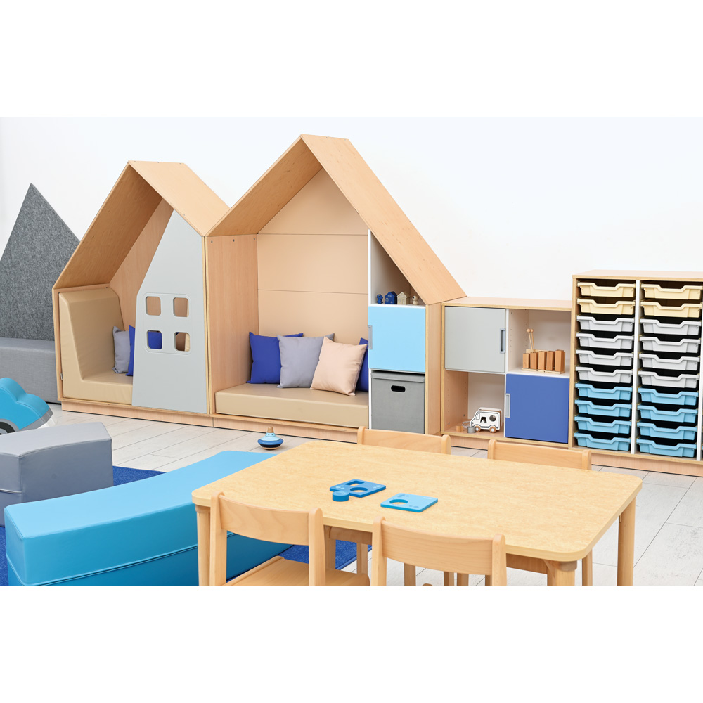 Mehr als nur ein Schrank - ein kleines Haus! Die Rückwand besteht aus farbig folierter Spanplatte (Stärke 18 mm). Regalfächer können mit Türen, klein (095385-095396, separat bestellbar) ergänzt werden. Höhe der seitlichen Abschlüsse entspricht den Standardhöhen M und L der Quadro-Schränke. Eine prima Ergänzung sind die passenden Matten B 113 (101865-101867, separat erhältlich).