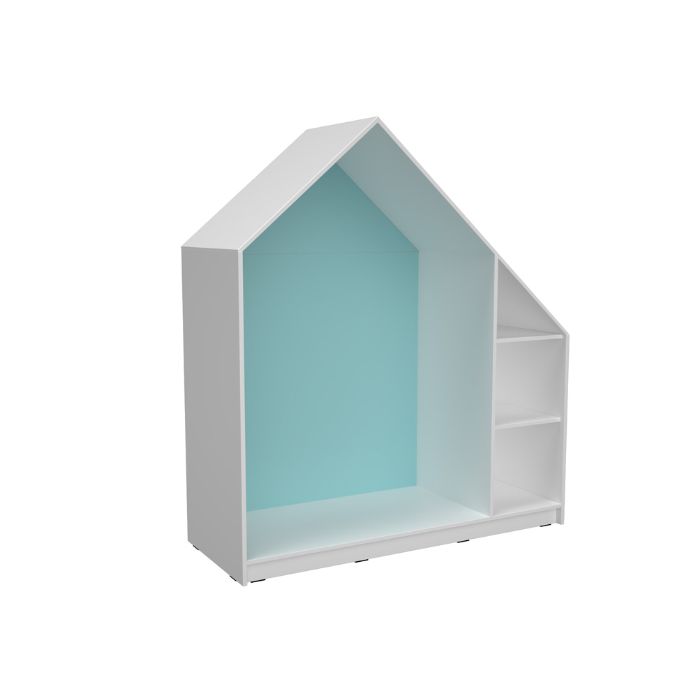 • aus laminierter Spanplatte (Stärke: 18 mm), weiss, Dach aus Sperrholz (weiss lackiert)
