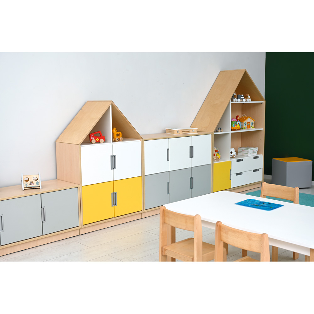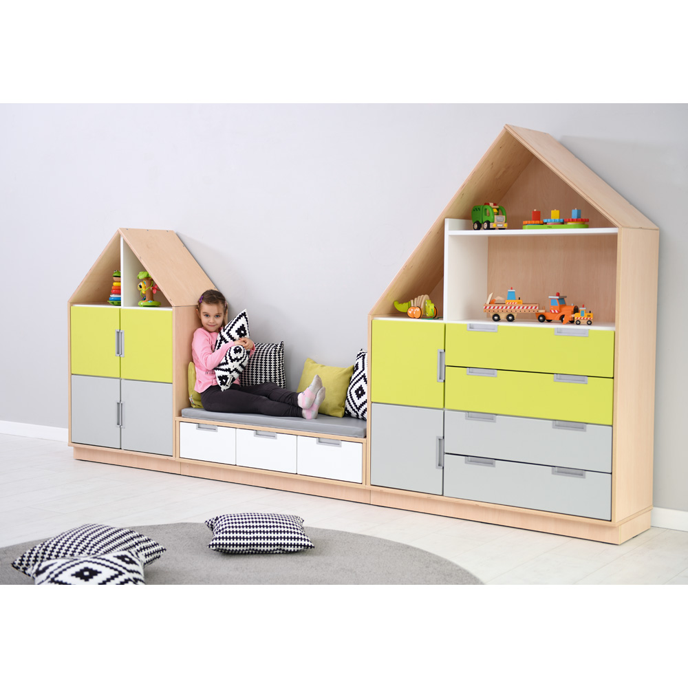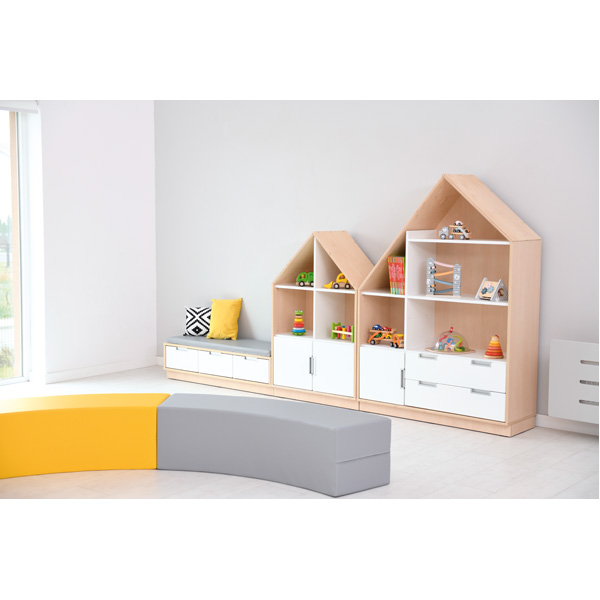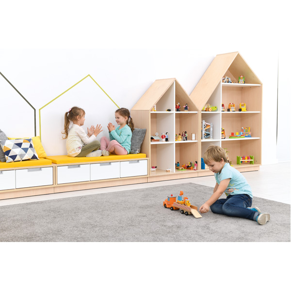 Mehr als nur ein Schrank - ein kleines Haus! Die schmalen Regalfächer können mit Türen, klein (095385-095396, separat bestellbar) ergänzt werden. Höhe der seitlichen Abschlüsse entspricht den Standardhöhen M und L der Quadro-Schränke.