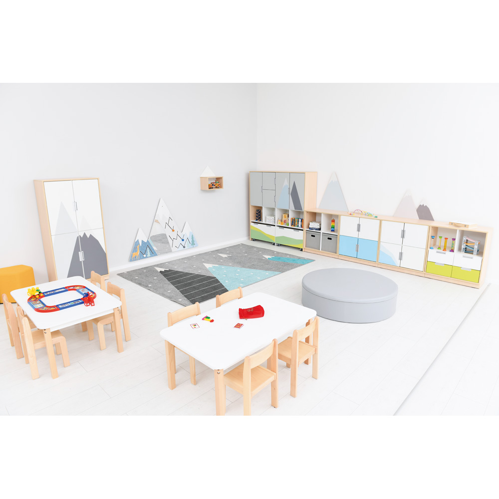 Quadro Themenschranksets bestehen aus funktionalen Schränken, deren fantasievolle Frontengestaltung verschiedenen Themenbereichen entsprungen ist. Ob Bergsteiger, Meeresforscher, Prinzessin oder Waldbewohner - die farbenfrohen, kindgerechten Applikationen schaffen eine inspirierende und zugleich harmonische Umgebung und laden zum Spielen und Lernen ein. Der Möbelsatz ist nur komplett bestellbar. Er kann mit vielen Zusatzelementen aus unserem Sortiment wie Wandapplikationen, Teppichen oder Spielecken mit passenden Motiven ergänzt werden.