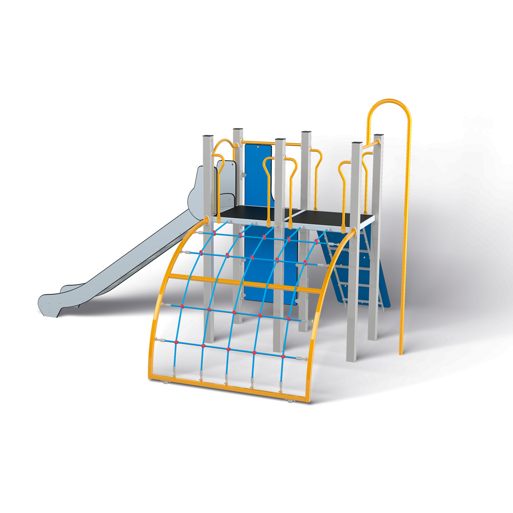 Abtauchen in die Welt der Fantasie und spannende Abenteuer erleben. Die Spielplatz-Serie Quadro bietet vielfältigen Spielspass, auch schon für die Allerkleinsten (Quadro Baby). Die bunten Spielwände dienen auf den Anlagen als Brüstung und laden zum Verweilen ein. Kleine und große Weltentdecker finden hier etwas Passendes. Dabei trainieren sie neben ihrer Körperbeherrschung zugleich auch ihre Feinmotorik. Die Anlagen der Kollektion Quadro bestehen aus hochwertigen Materialien, die eine lange Haltbarkeit garantieren. Sie eignen sich besonders für Kindergärten, Quadro Baby mit seinen niedrigen, rutschfesten Podesten, kleinen Rutschen und Rampen mit flacher Neigung auch für Kinderkrippen. Alle Geräte entsprechen DIN EN 1176 und sind zertifiziert, erfüllen somit die Voraussetzungen für den öffentlichen Bereich. Wir gewähren 2 Jahre Garantie.