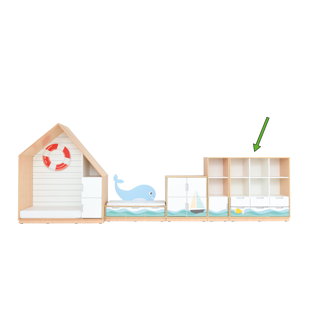 Quadro-Themenschranksets bestehen aus funktionalen Schränken, deren fantasievolle Frontengestaltung bestimmte Themenbereiche ansprechen. Farbenfrohe, kindgerechte Applikationen schaffen eine inspirierende und doch dezente Umgebung, die zum Lernen und Spielen anregt. Das Set kann mit Zusatzelementen zu den jeweiligen Themen ergänzt werden. Die Schränke sind auch einzeln erhältlich.