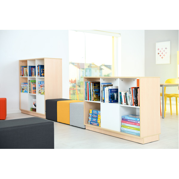 Offenes Regal, beidseitig zugänglich. Als Raumteiler nutzbar. Die Fächer in der unteren Reihe sind jeweils von einer Seite zugänglich. Der Schrank ist nicht mit zusätzlichen Einlegeböden, Türen oder Schubladen ergänzbar.