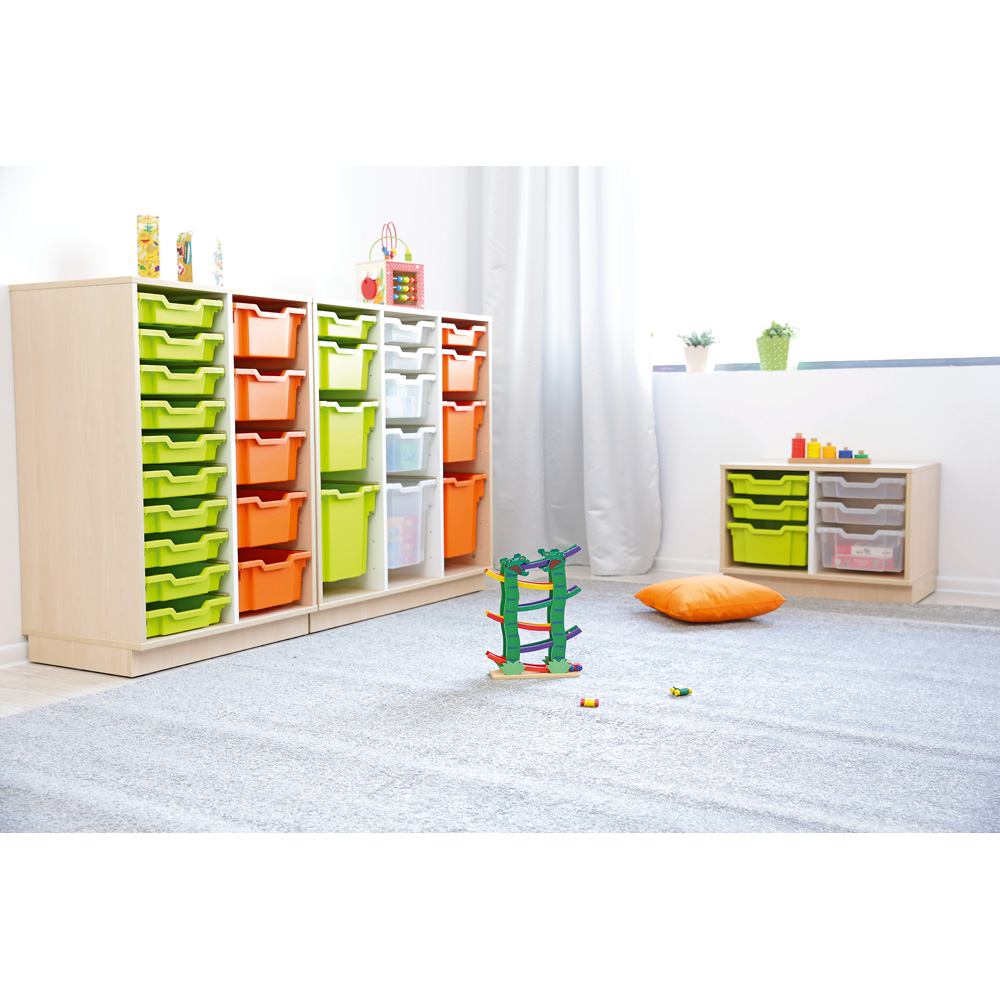 Die geräumigen Fächer können variabel mit Kunststoffbehältern verschiedener Höhen bestückt werden (372005-372026, 372034-372041, 372050-372073, separat bestellbar).